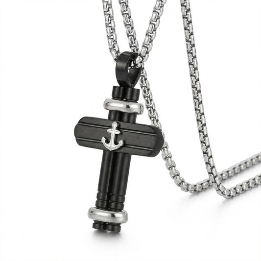 Stainless Steel Black Cross Necklace 50 + 5 cm