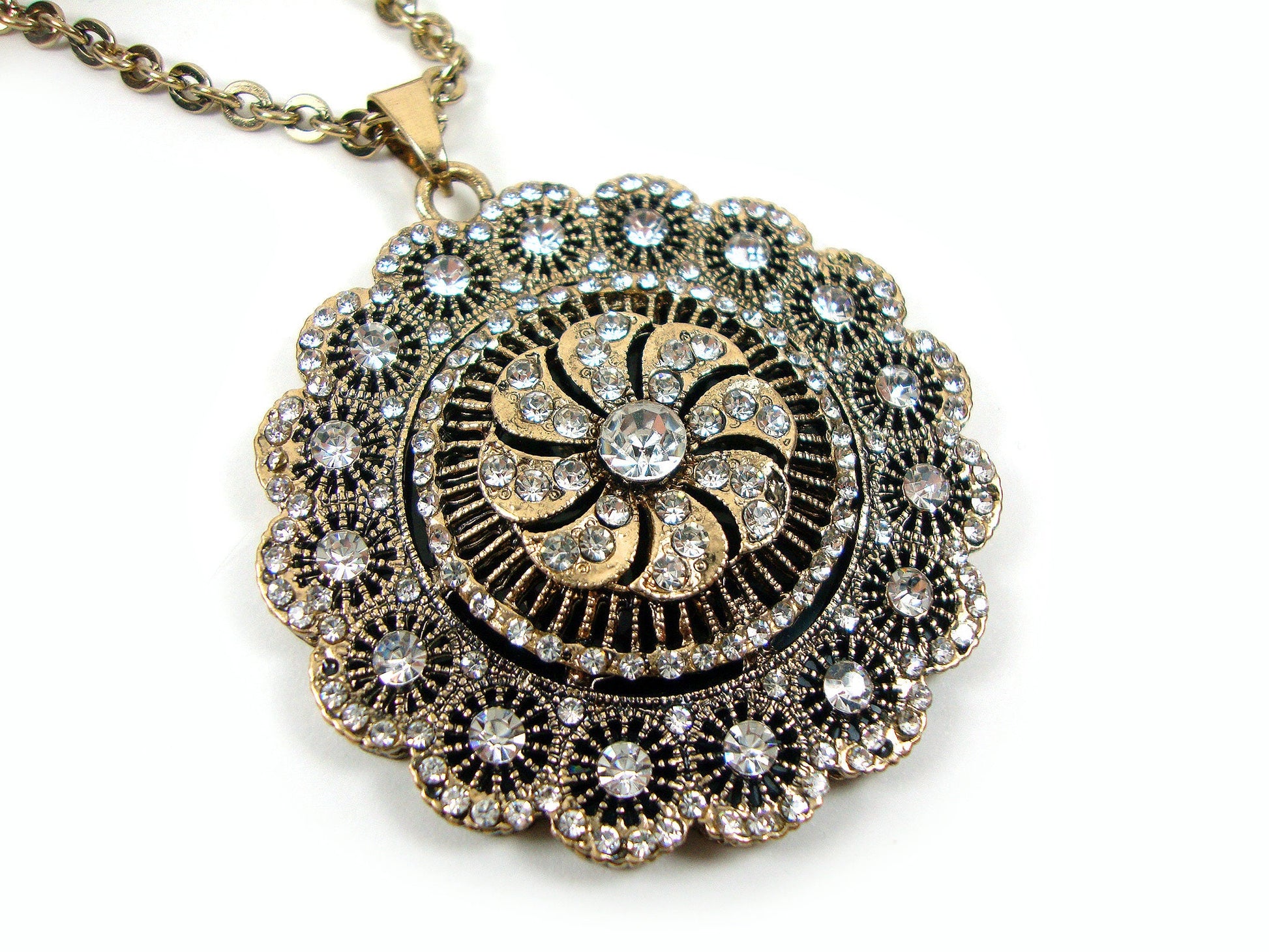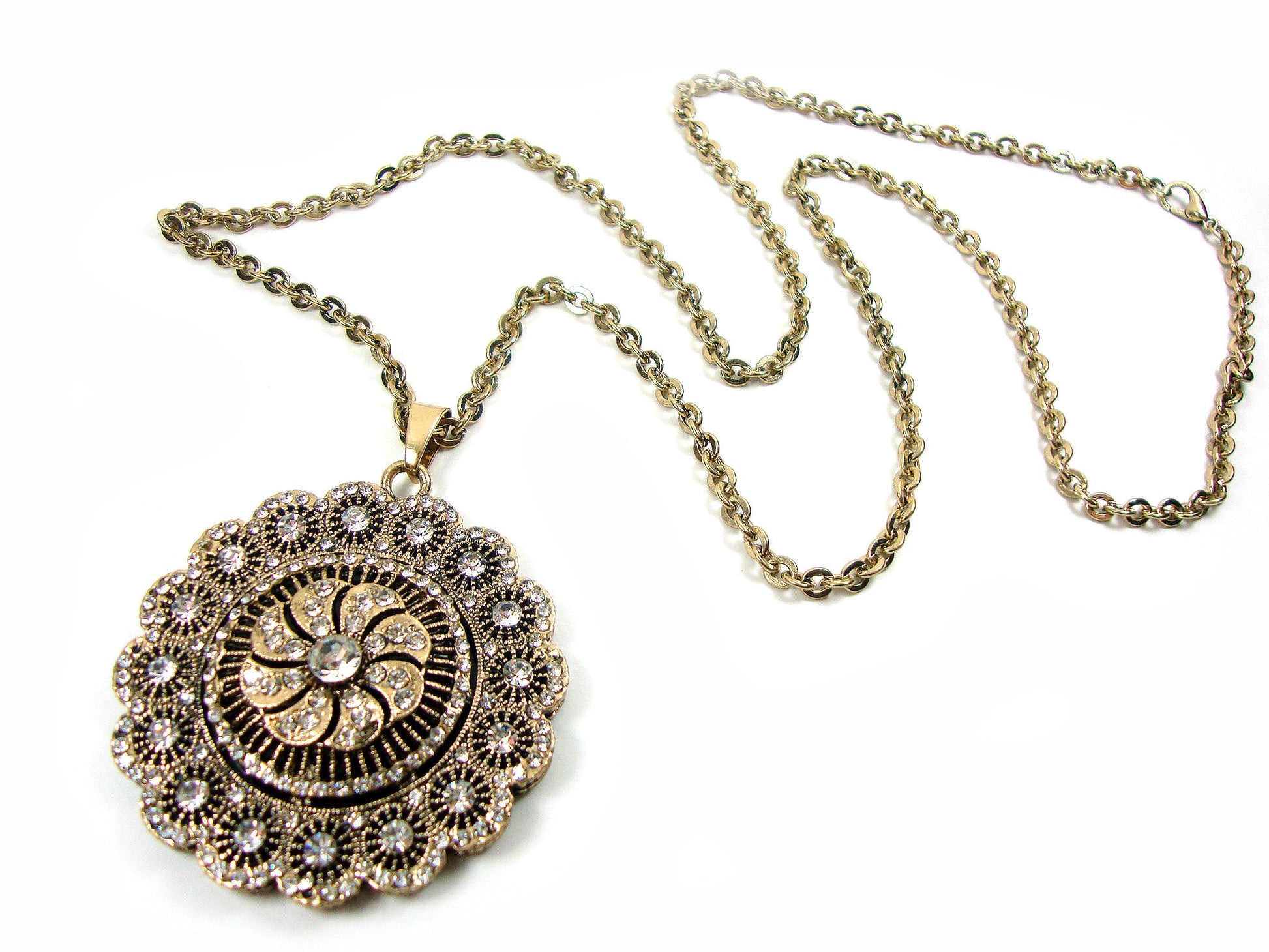 Byzantinischer moderner runder großer Kristallstein-Kettenanhänger 50 mm, ethnischer Anhänger, antiker türkischer traditioneller Schmuck, lange Kristallhalskette