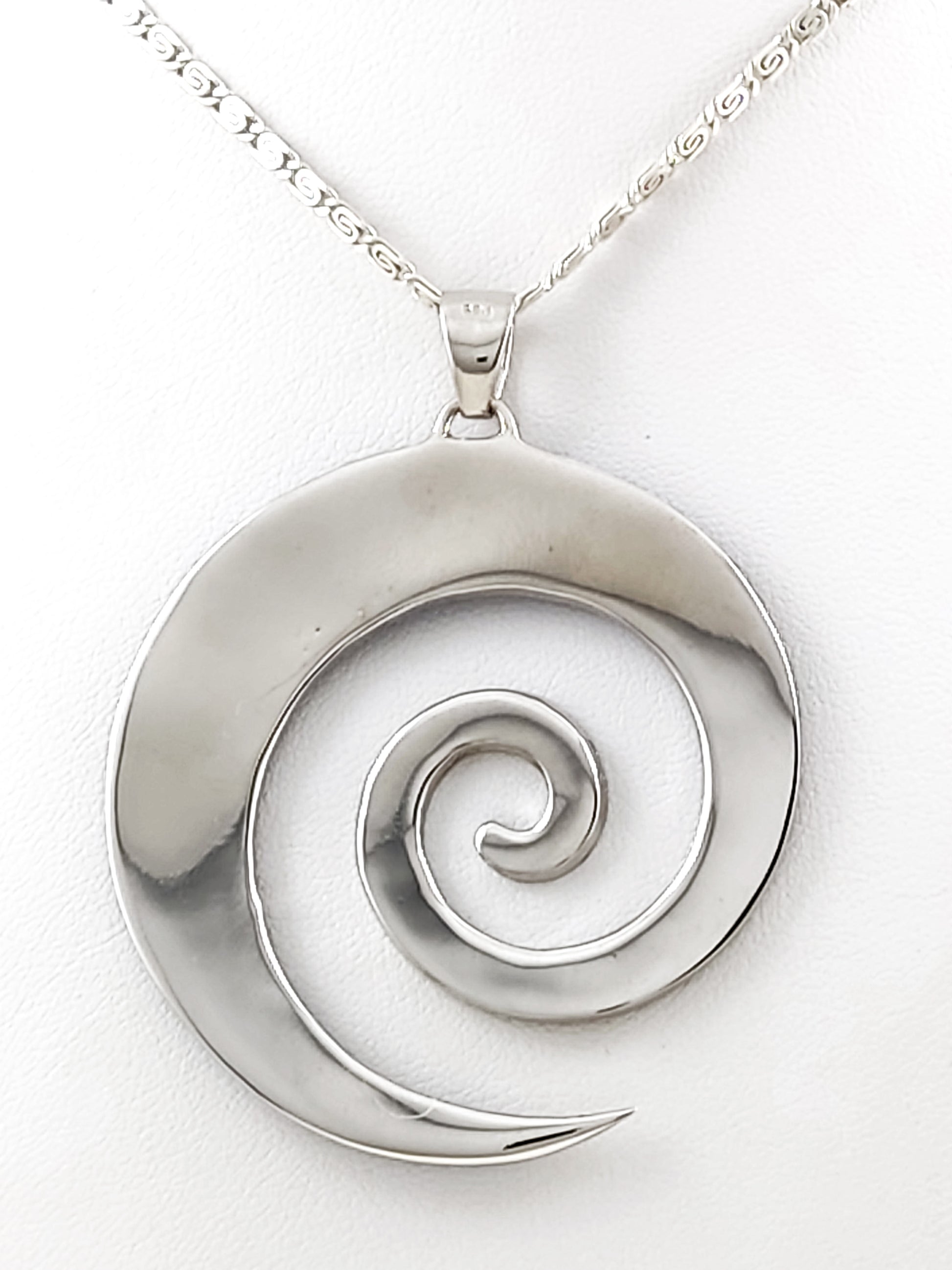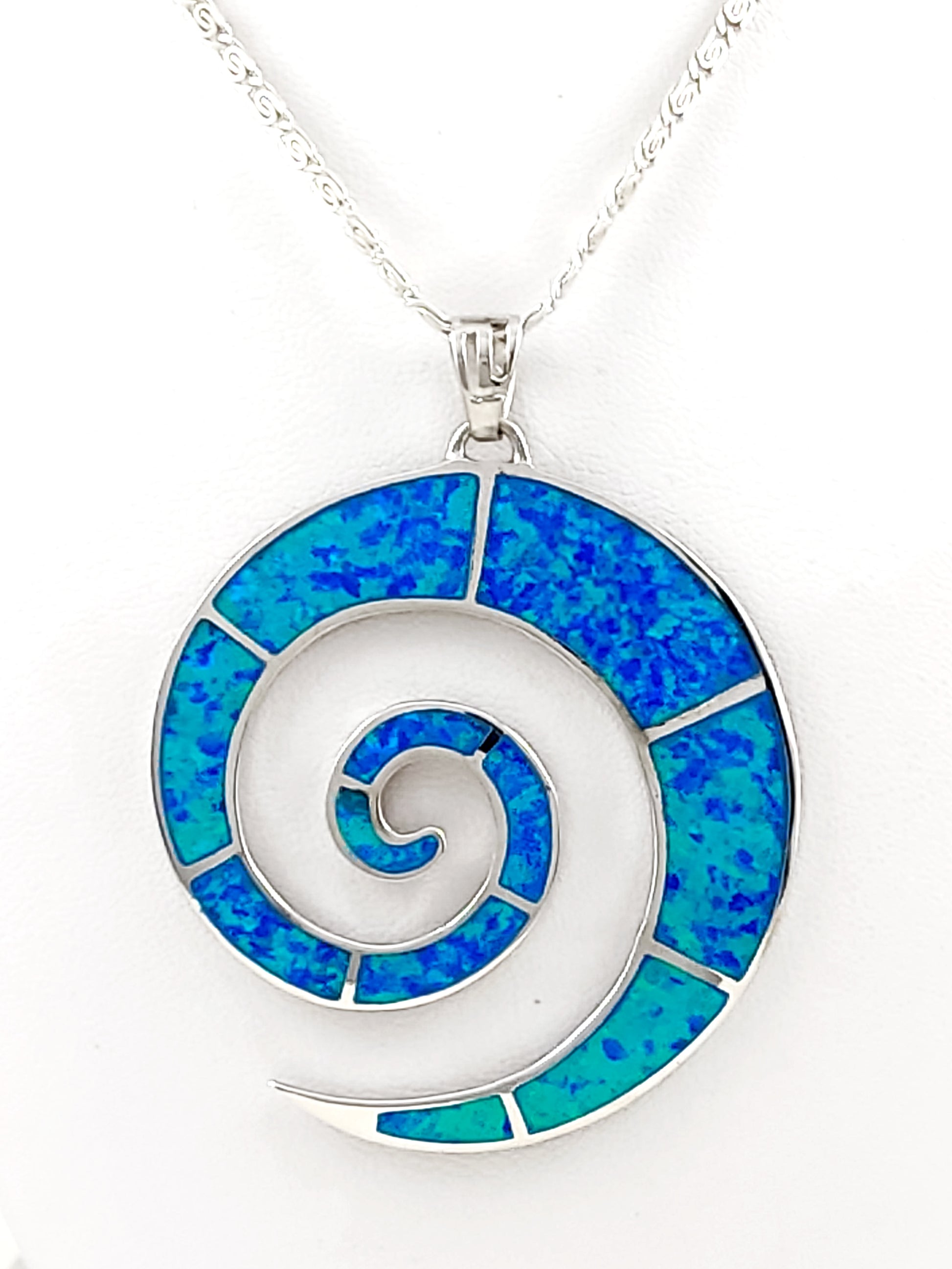 Griechische Spirale, blauer Opal, Silber, großer Anhänger, 50 mm Halskette