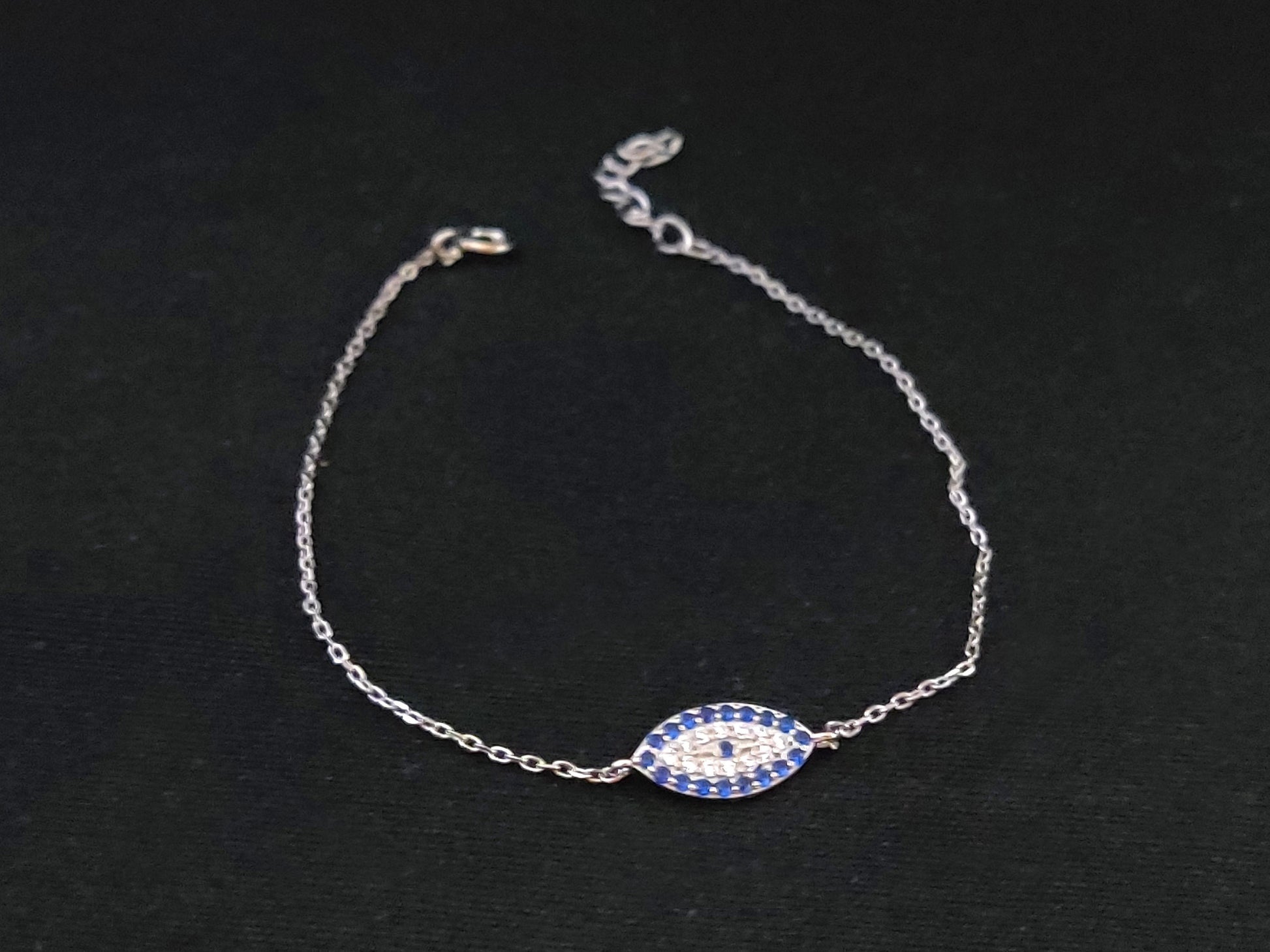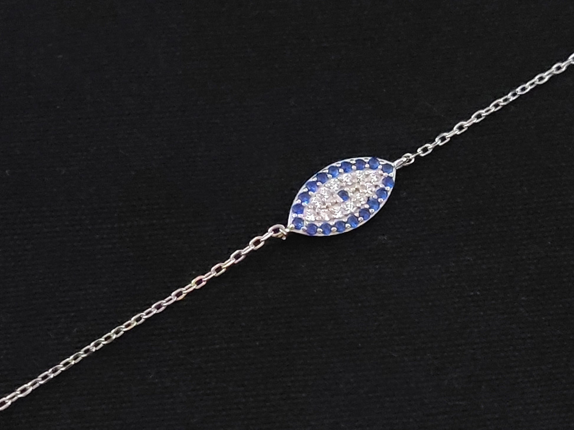 Sterling Silber 925 Griechisch Evil Eye Mati 11x6mm verstellbares Armband, Crystal Blue Evil Eye, Modern Evil Eye Armband, Fine Evil Eye Armband