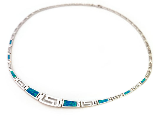 Halskette aus 925er Sterlingsilber mit griechischem Mäandermuster und blauem Opal