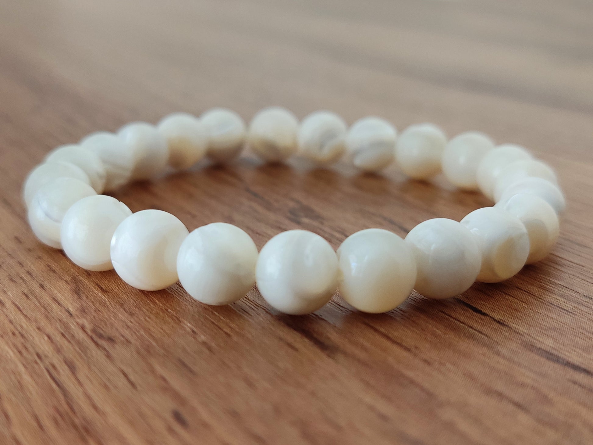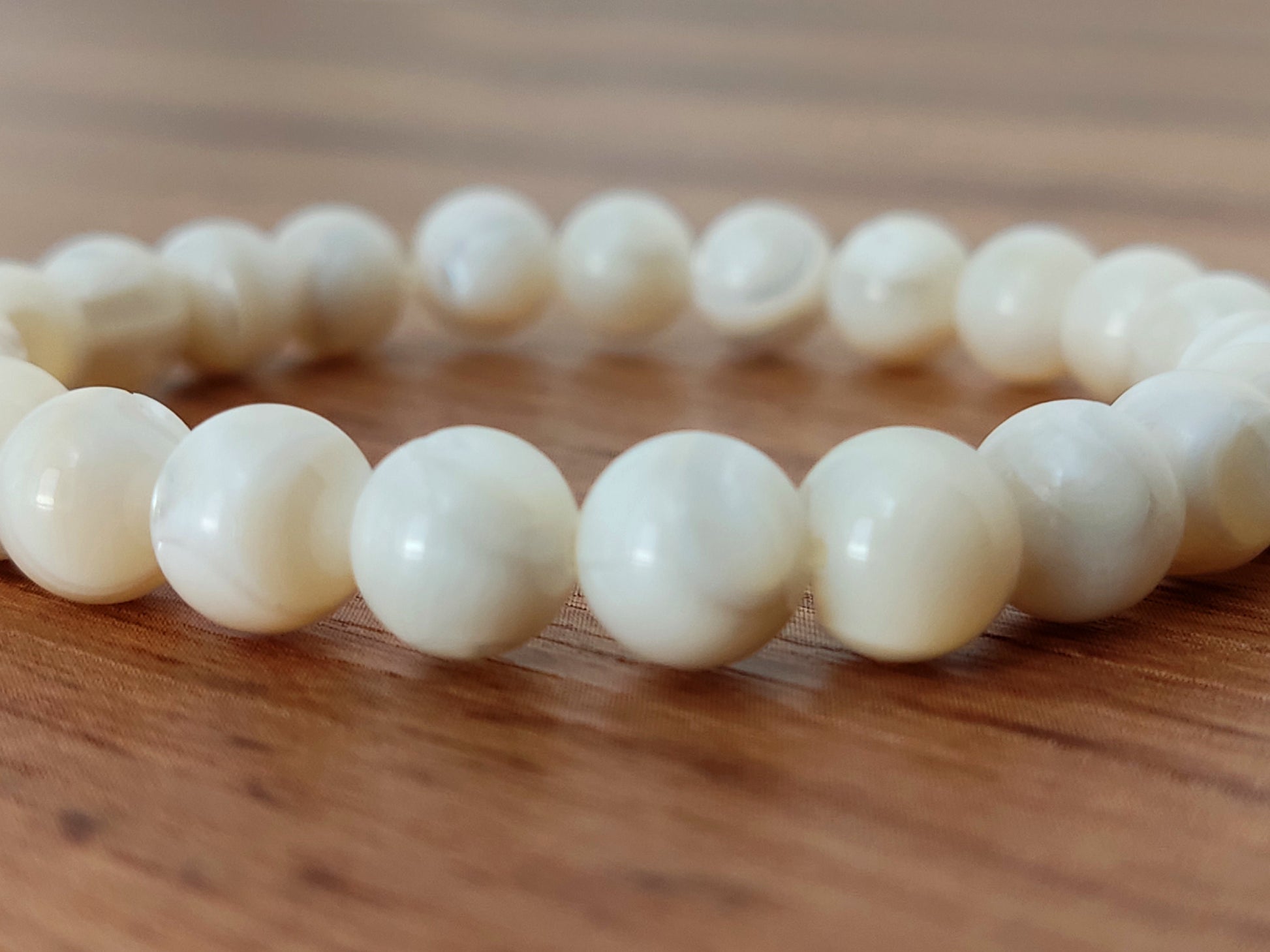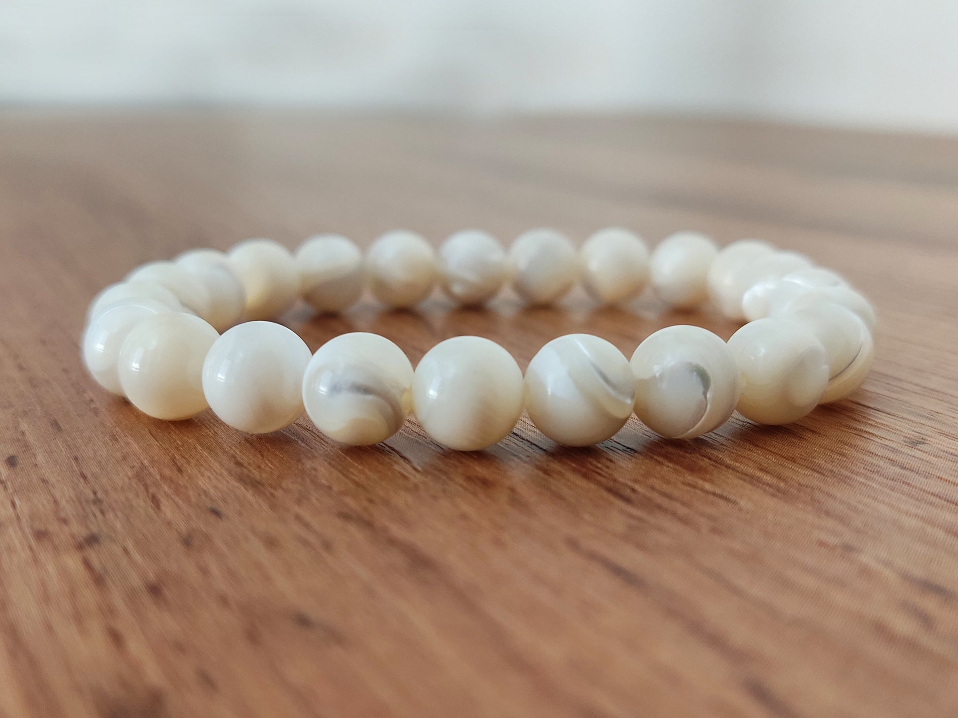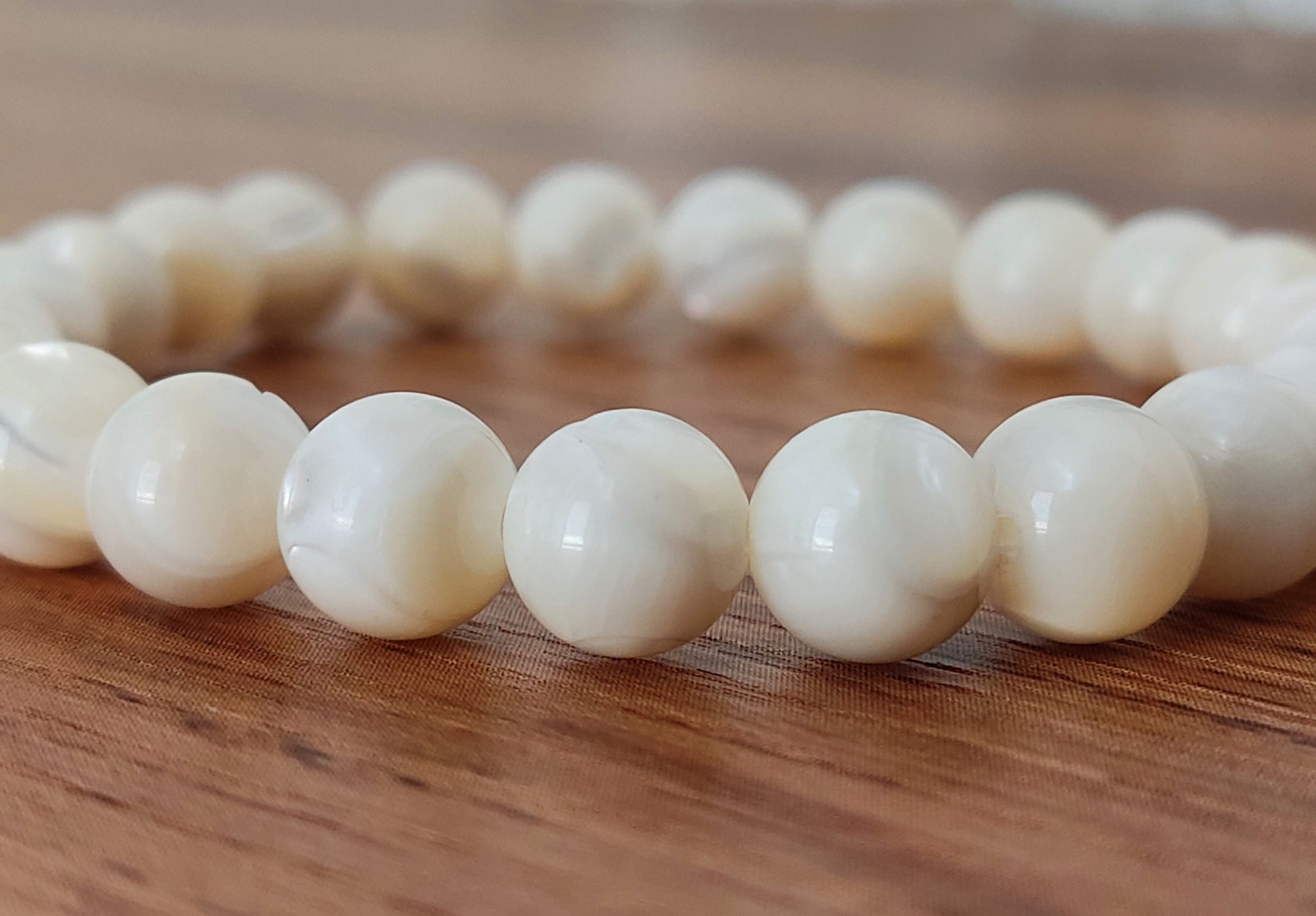 Natürliches Perlmutt Cremeweiße Perlen 8mm Armband, Perlenarmband, MOP-Armband, Braut-Weiß-Perlen-Armband, Weiβ Stein Armband