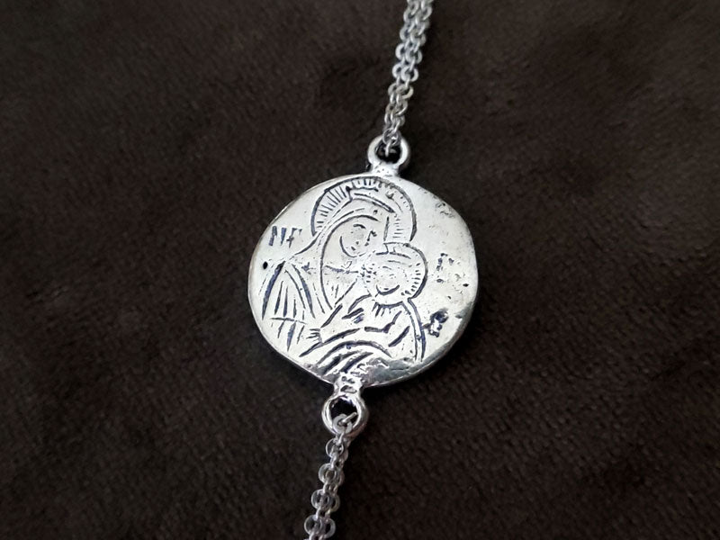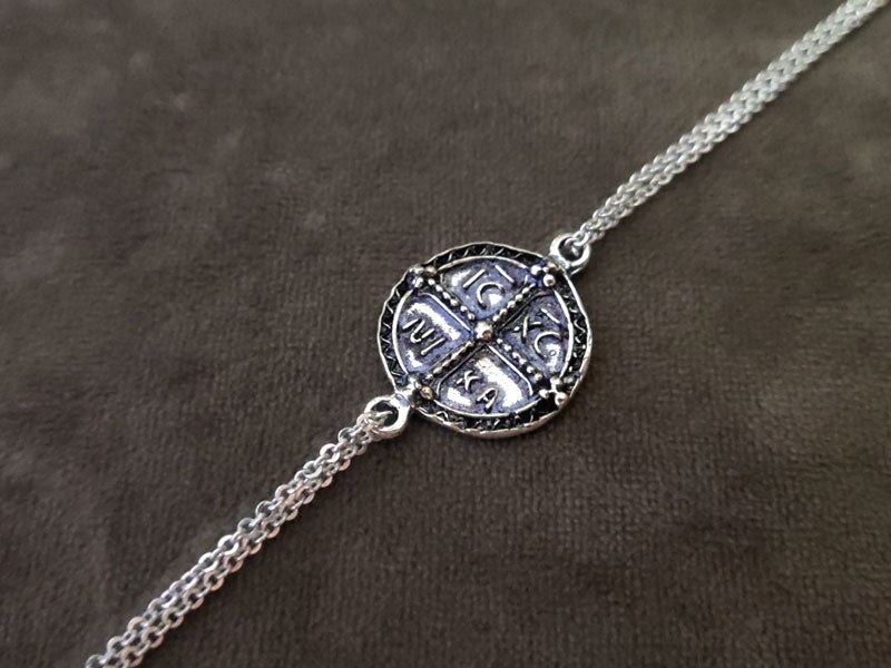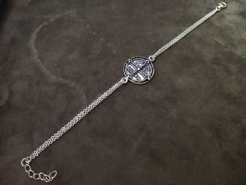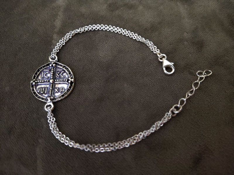 Greek Byzantine Konstantinato Coin Silver Chain Bracelet 20mm
