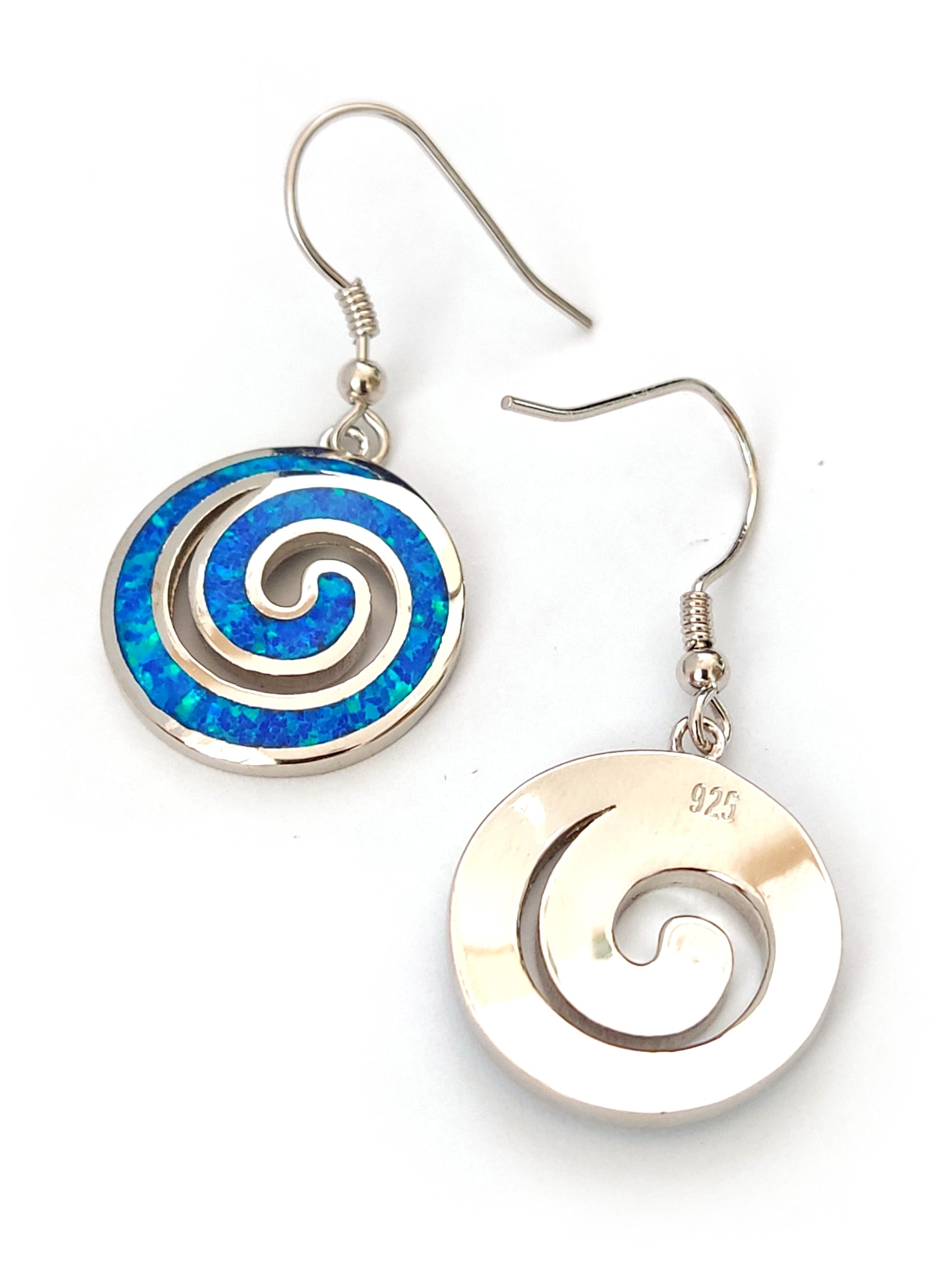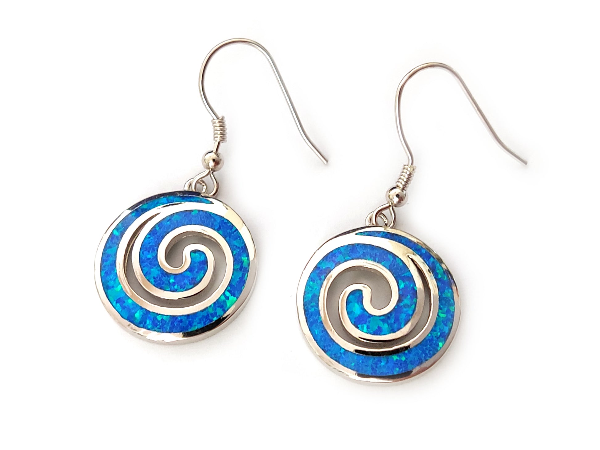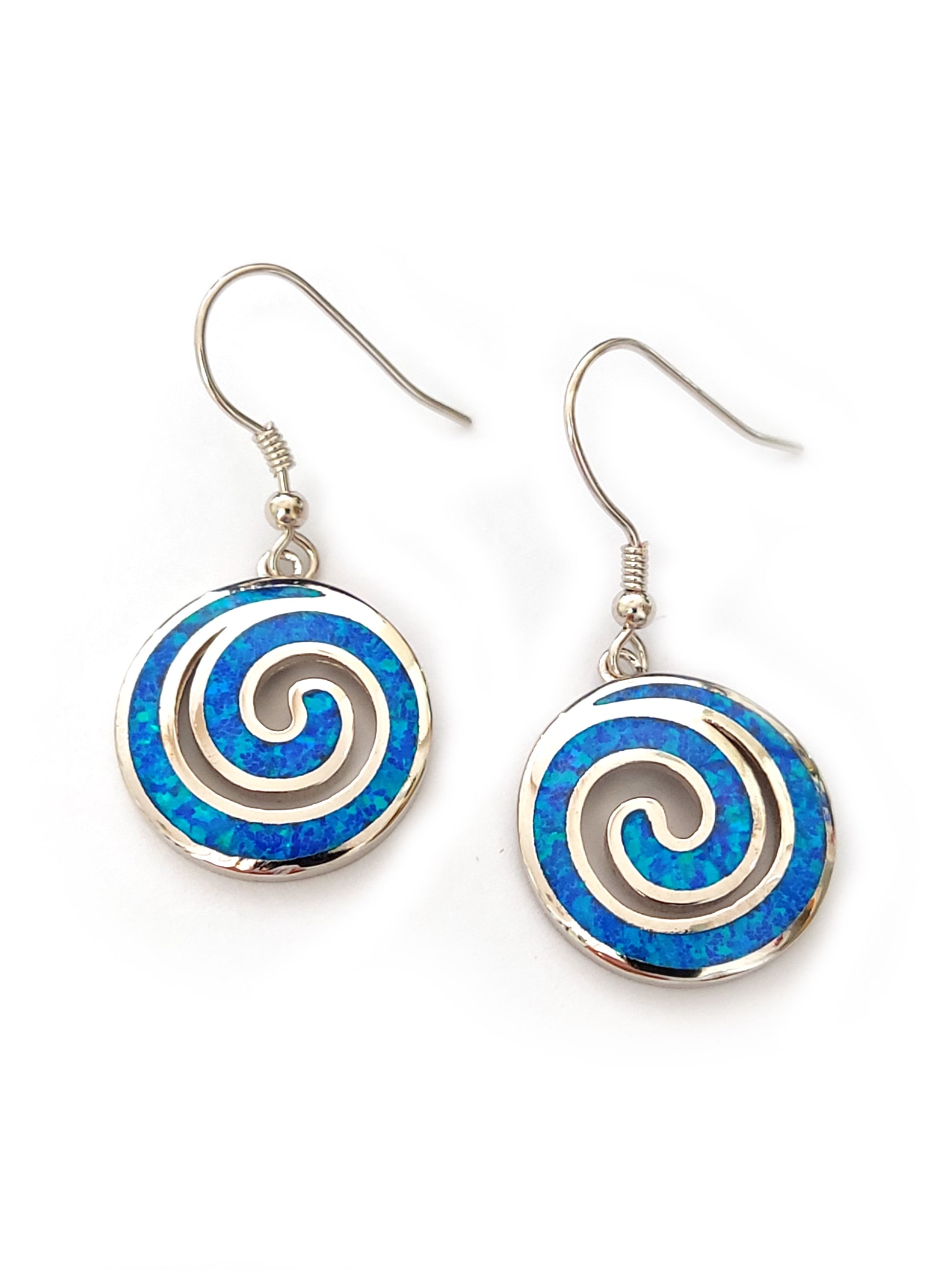 Greek Spiral Blue Opal Silver Dangle Earrings 18mm