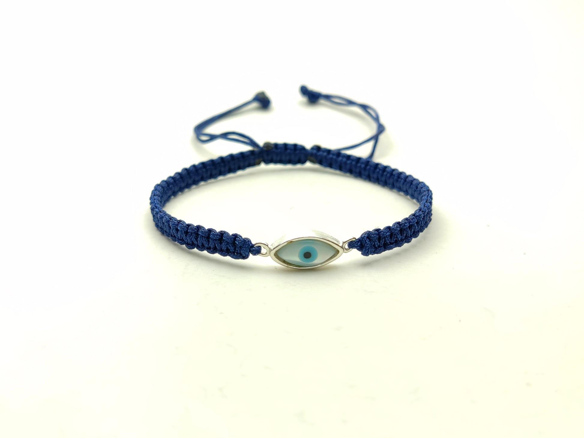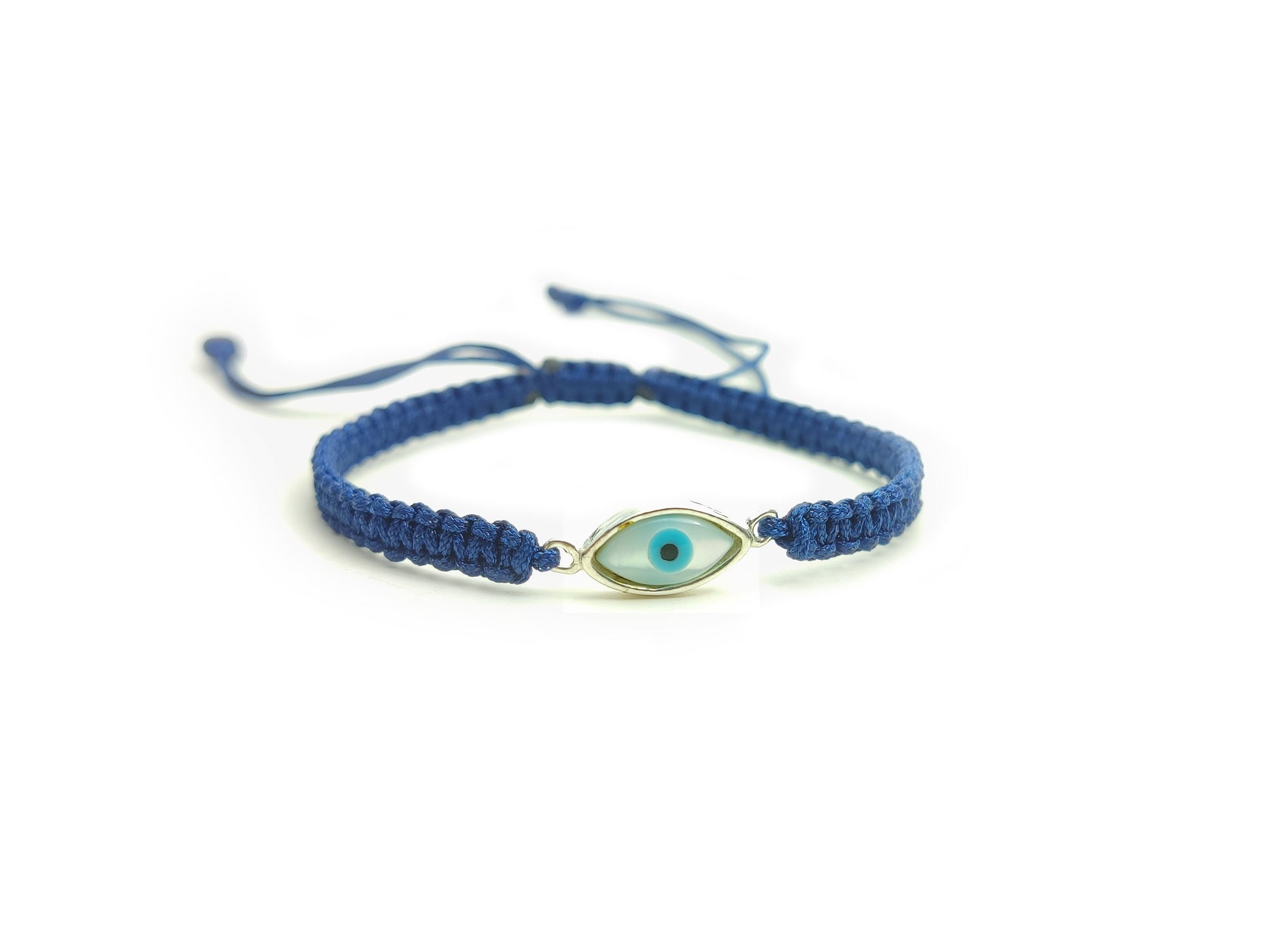Sterling Silver 925 Greek Evil Eye Mati Good Luck Adjustable Macrame Blue Bracelet 12x6mm , Griechische Silber Armband, Bijoux Grecque