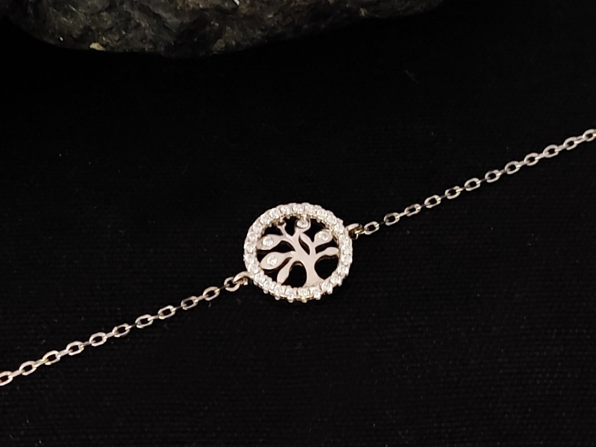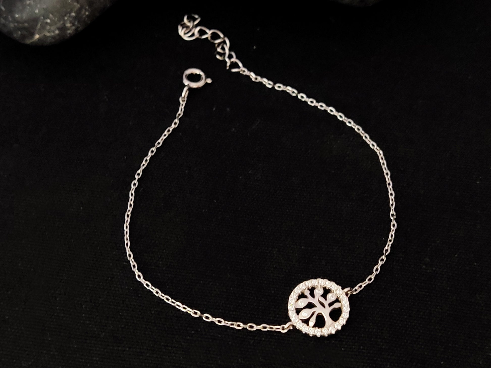 Sterling Silver 925 Tree Of Life 10mm Fine Chain Adjustable Minimalist Jewelry Greek Bracelet , Griechischer Silber Armband, Bijoux Grece