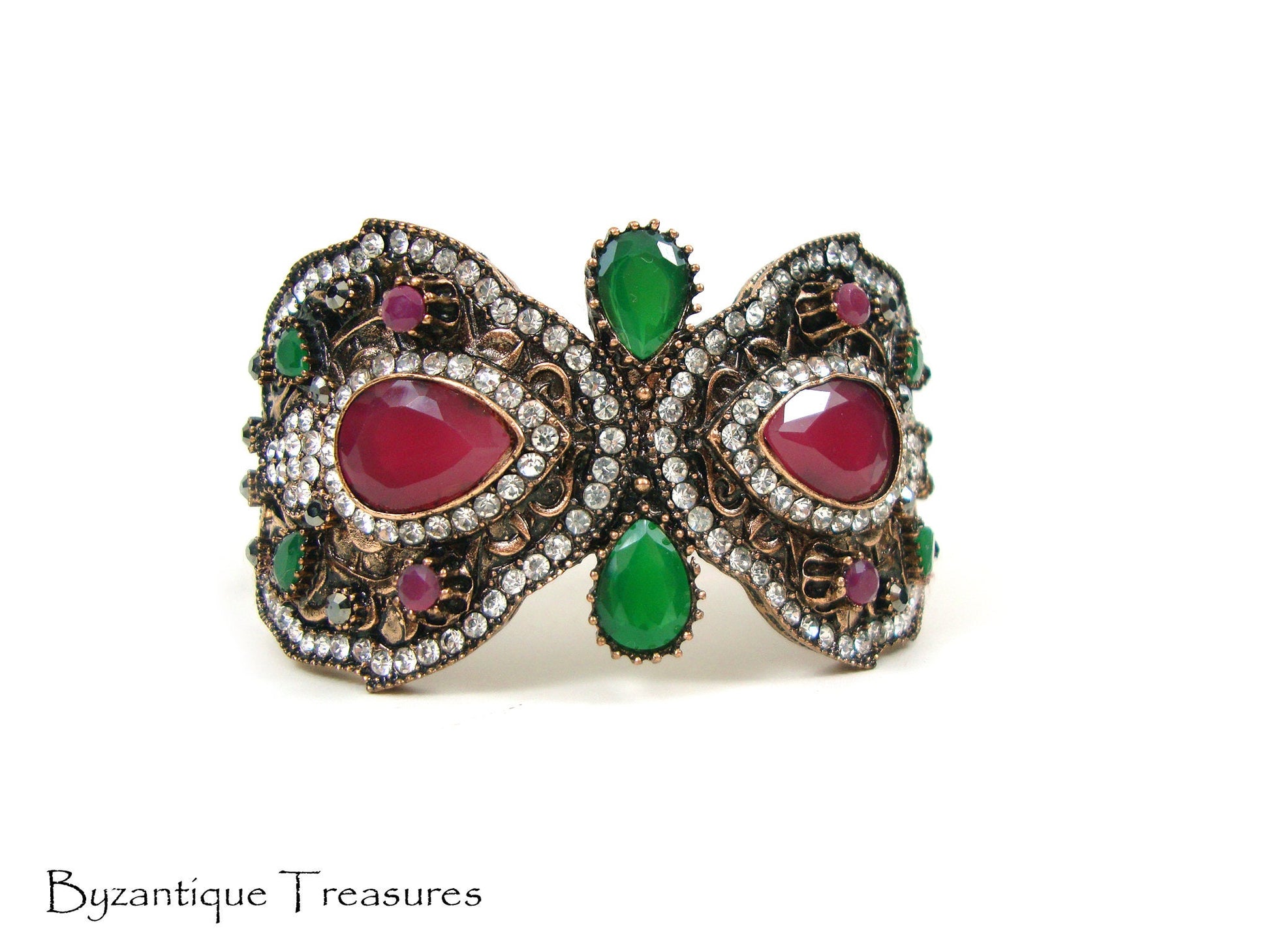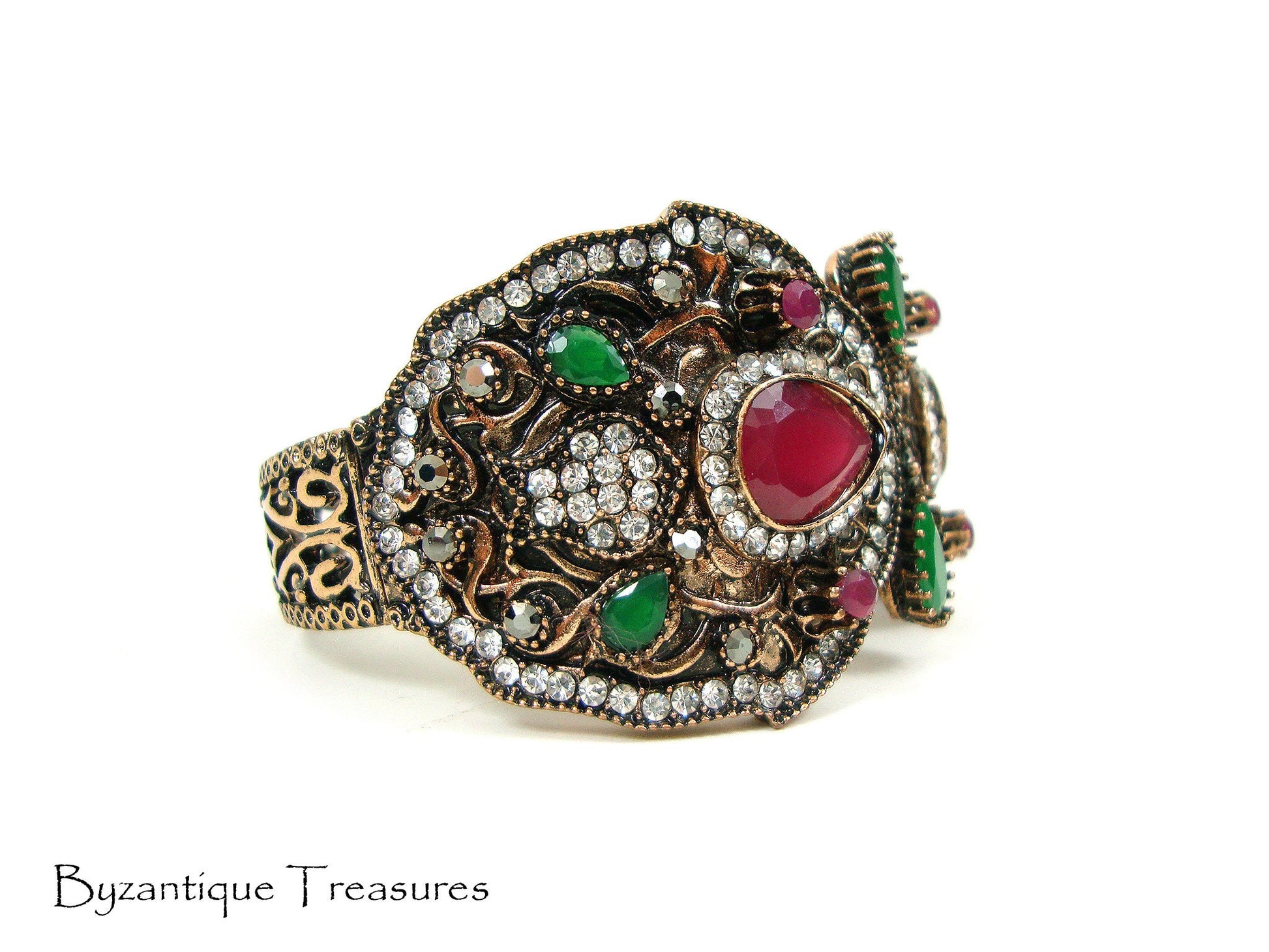 Byzantine Bangle Bracelet Crystal Stones, Byzantine Colored Bracelet, Turkish Bracelet, Turkish Jewelry, Traditional , Antique Bracelet