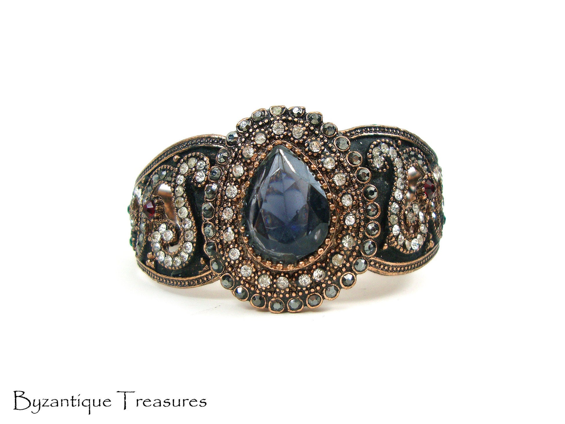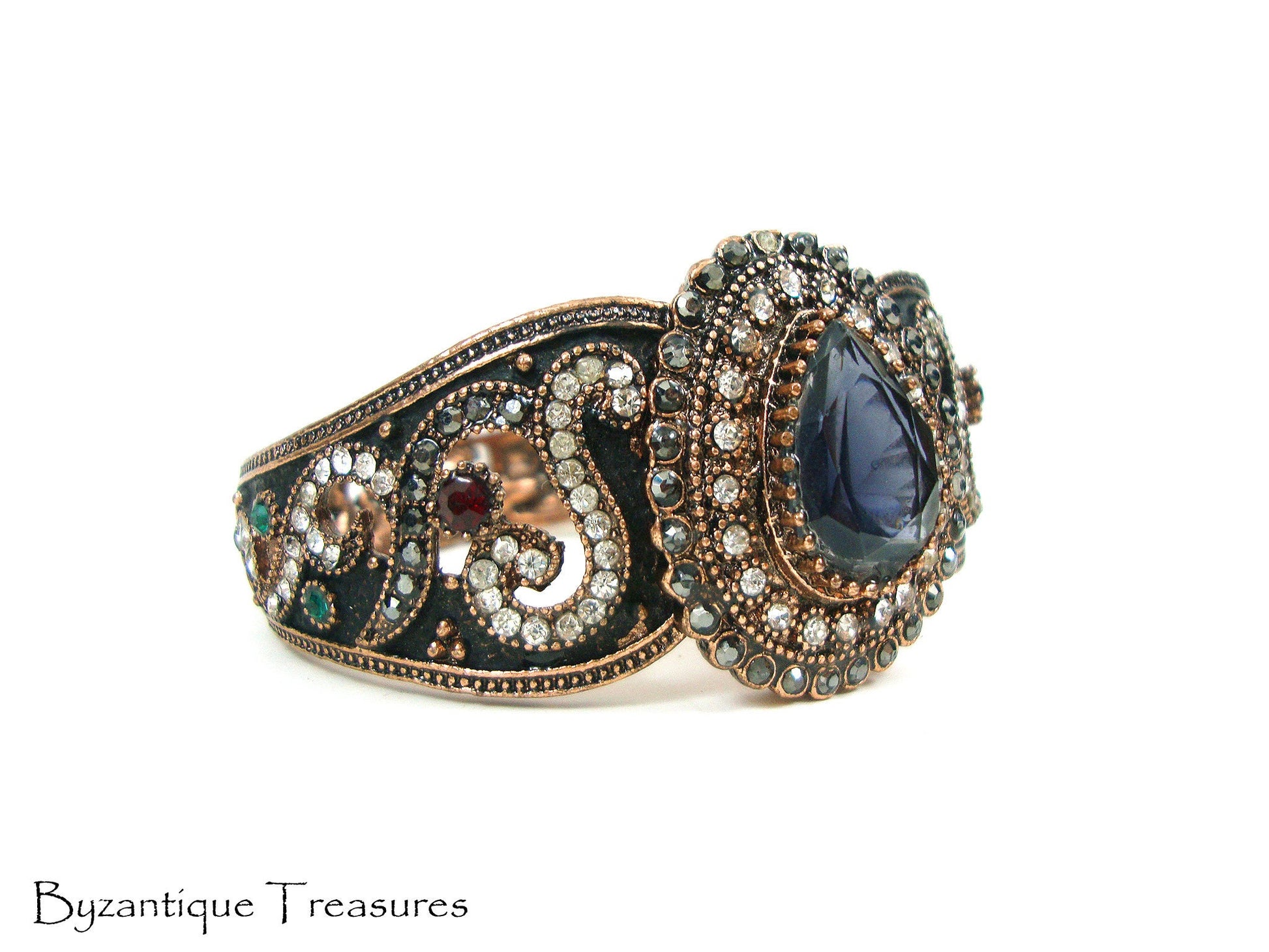 Byzantine Bangle Bracelet Crystal Stones, Byzantine Oxidized Bracelet, Turkish Bracelet, Turkish Jewelry, Traditional , Antique Bracelet