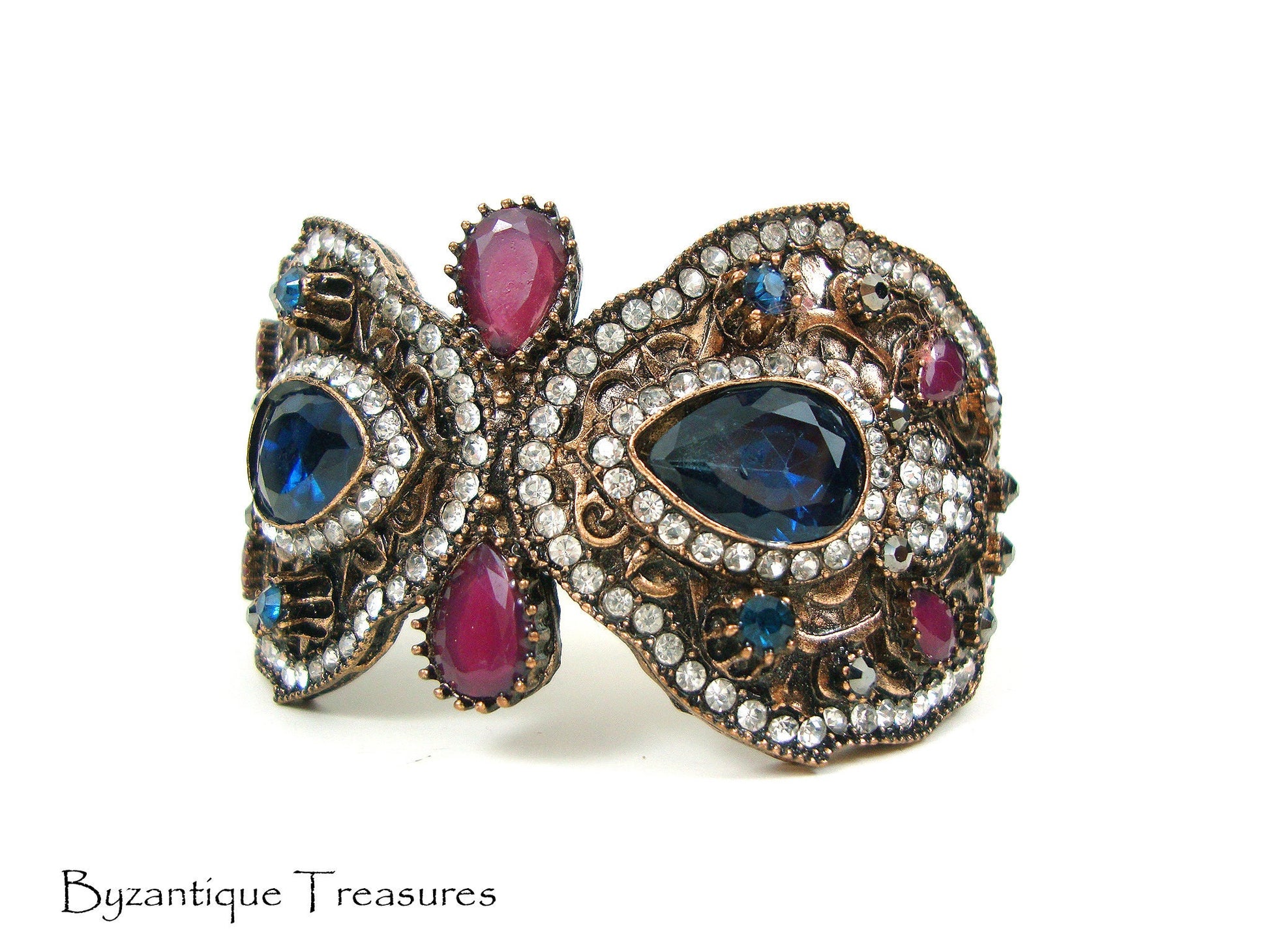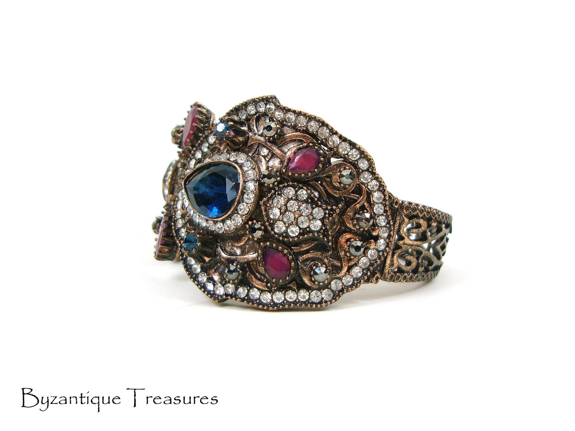 Byzantine Bangle Bracelet Crystal Stones, Byzantine Wide Bracelet, Turkish Bracelet, Turkish Jewelry, Traditional , Antique Bracelet