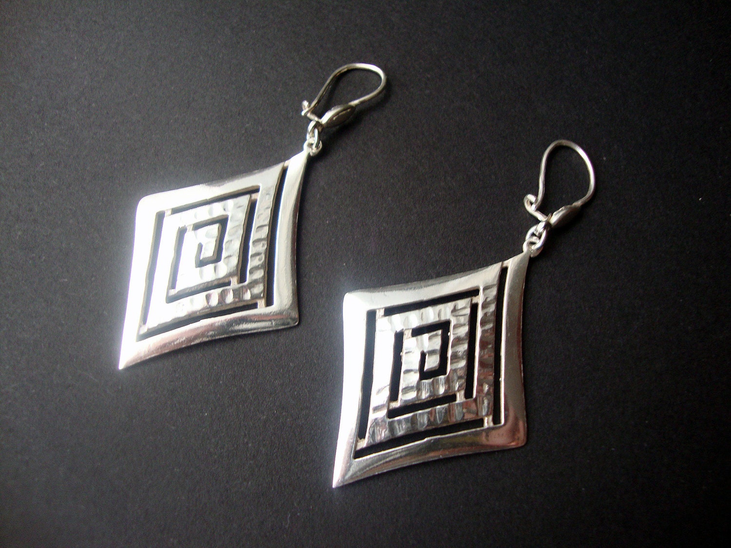 Silver Greek Earrings, Meander Greek Dangle Hammered Earrings From Greece, Jewelry From Greece, Bijoux Grece, Griechischer Ohrringe Schmuck