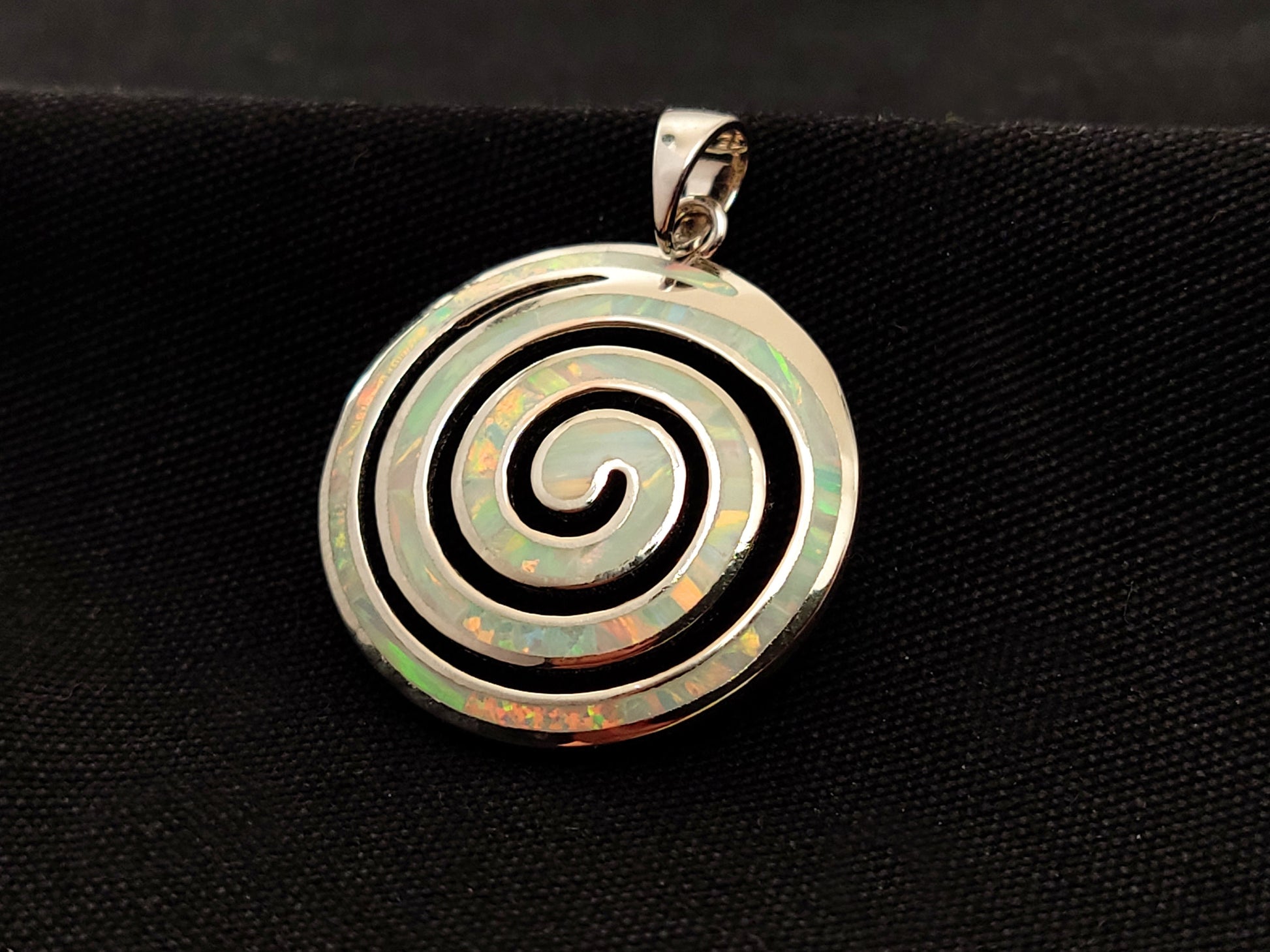 Sterling Silver 925 Greek Spiral Fire White Opal Pendant 25mm, Greek Opal Spiral Pendant, Greek Jewelry, Griechischer Opal Anhanger, Grecque