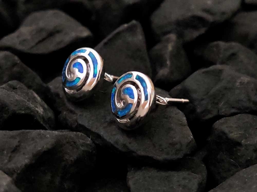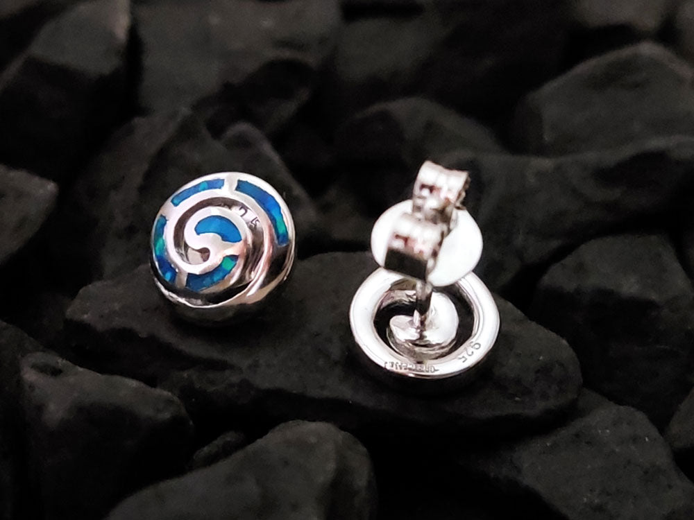 Greek Spiral Blue Opal Silver Studs Earrings 9mm