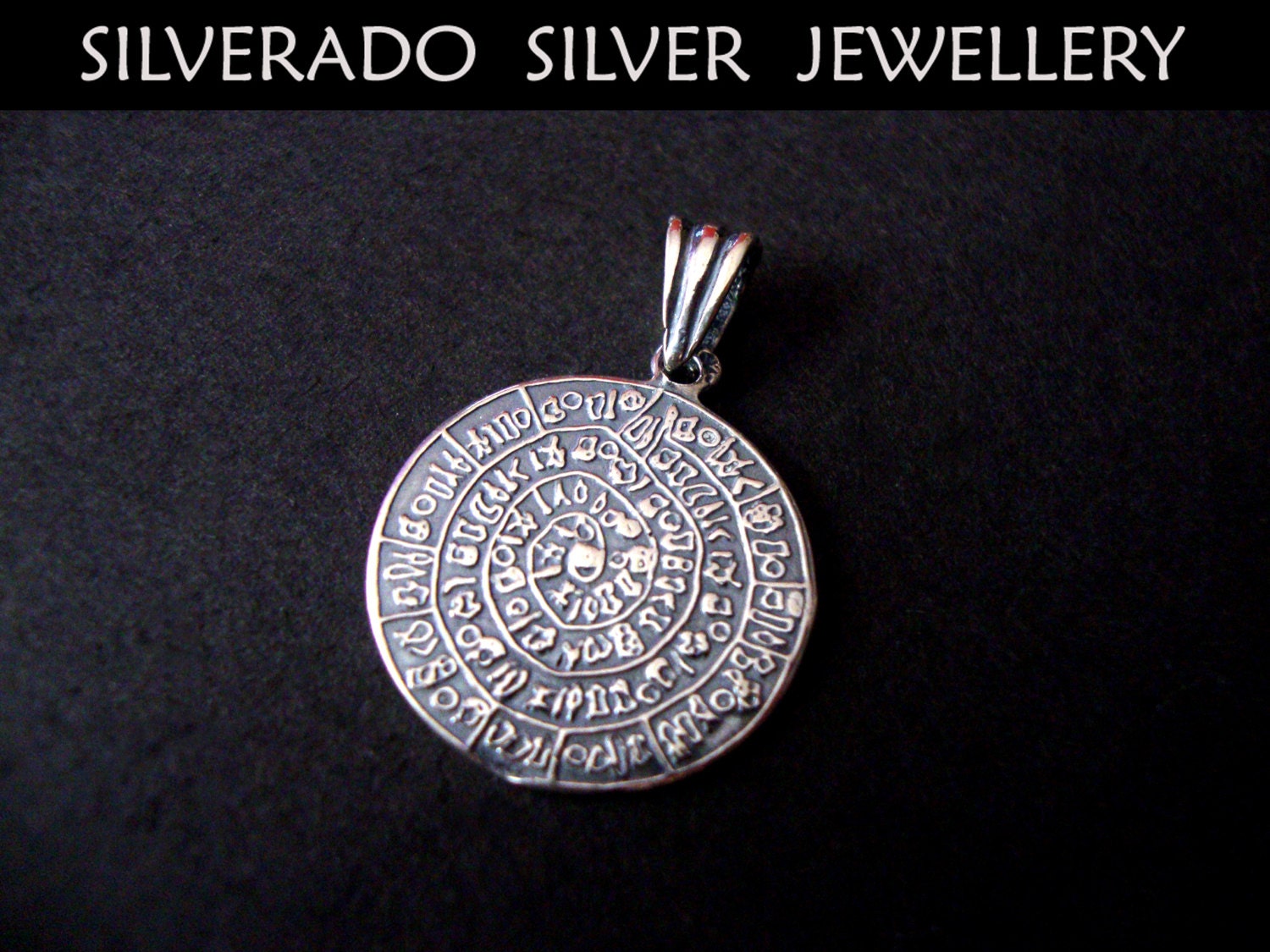 Sterling Silver 925 Ancient Greek Minoan Phaistos Disc Pendant 20 mm
