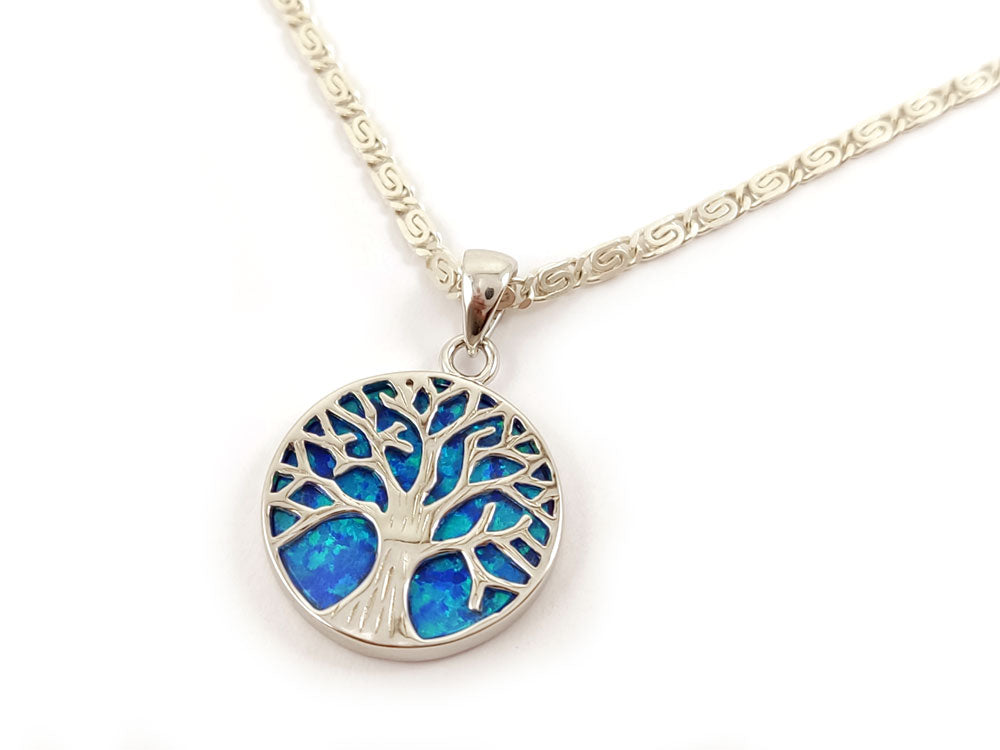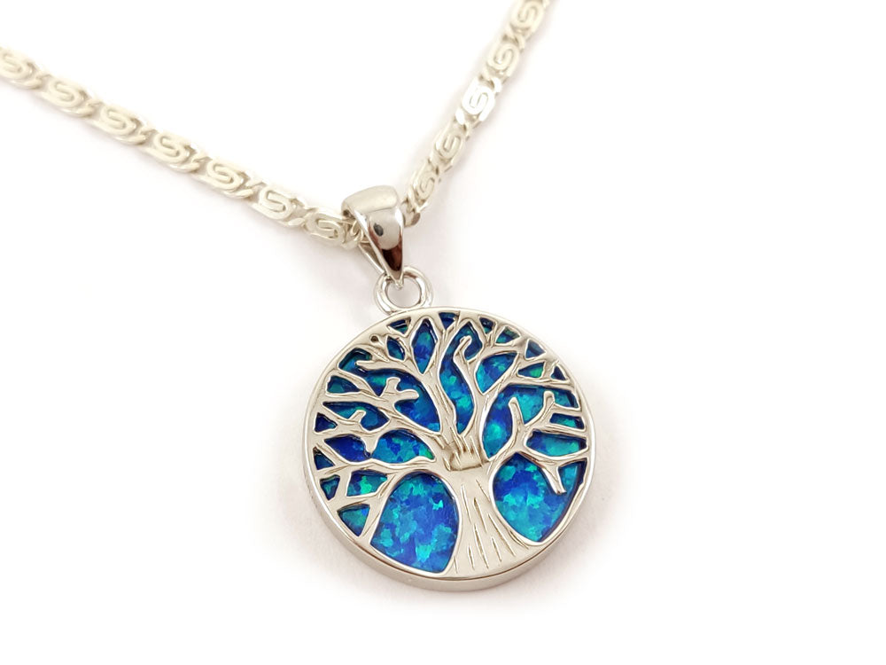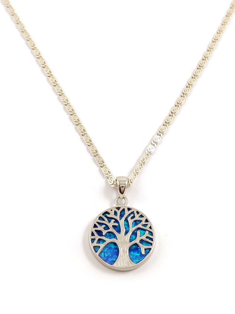 Tree Of Life Blue Opal Chain Pendant Necklace 18mm