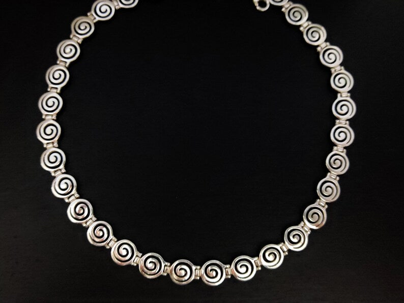 Greek Silver Spiral 10mm Necklace, Sterling Silver 925 Jewelry From Greece