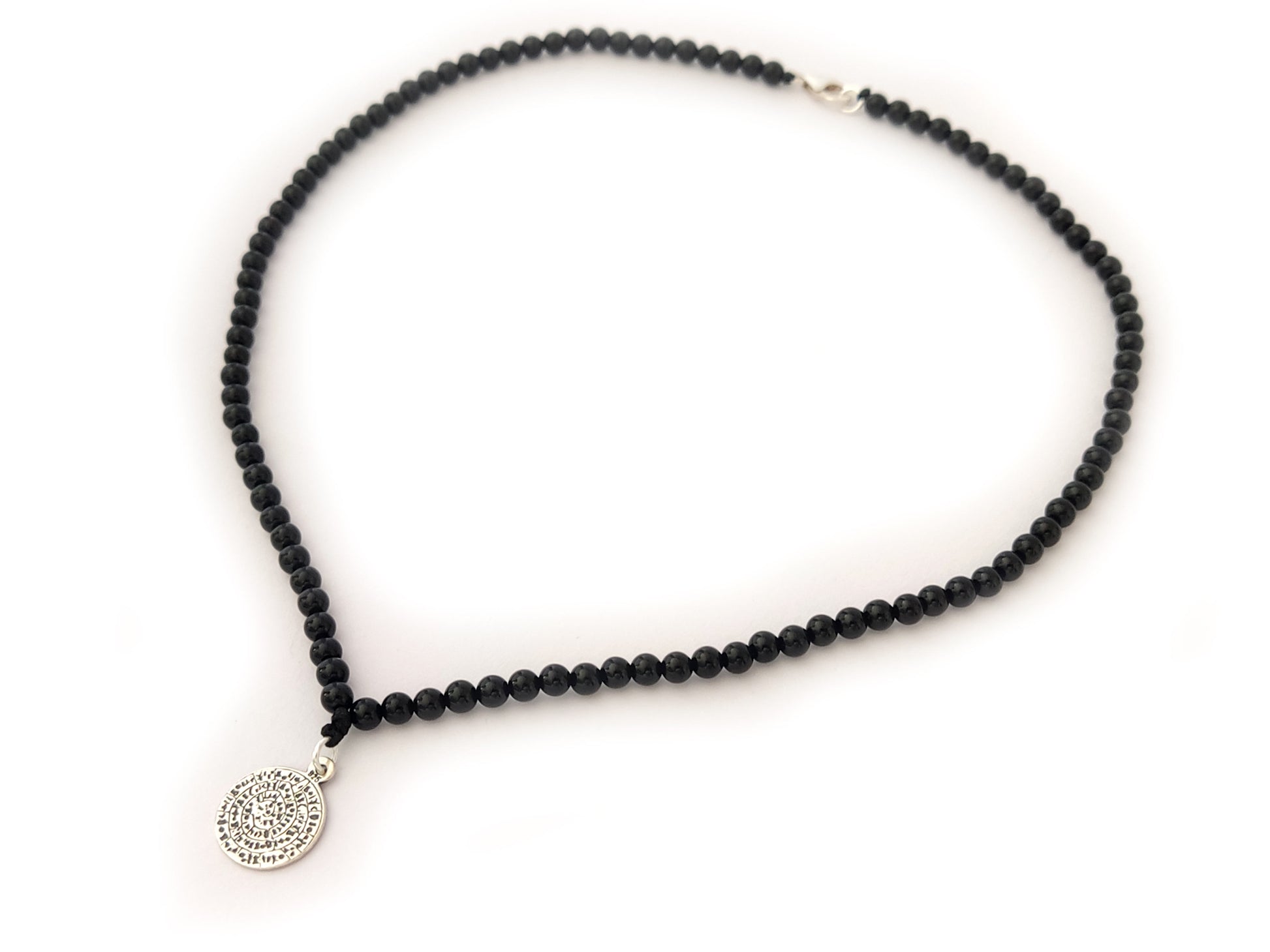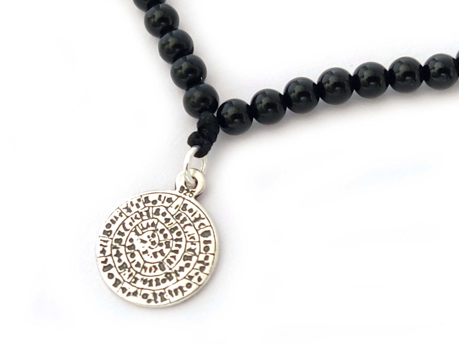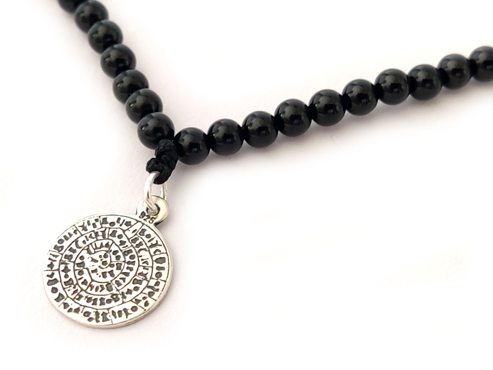 Phaistos Disc Necklace | Sterling Silver 925 | Black Onyx Stones 4mm | Sirioti Jewelry