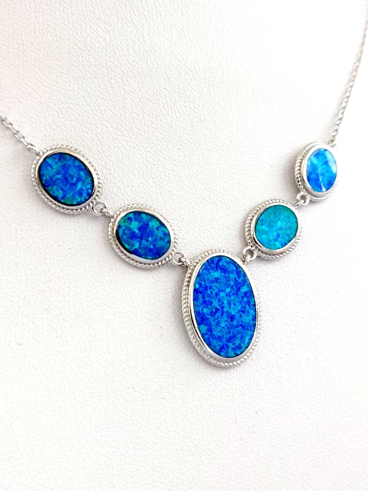 Sterling Silver 925 Blue Opal Oval Stones Chain Necklace