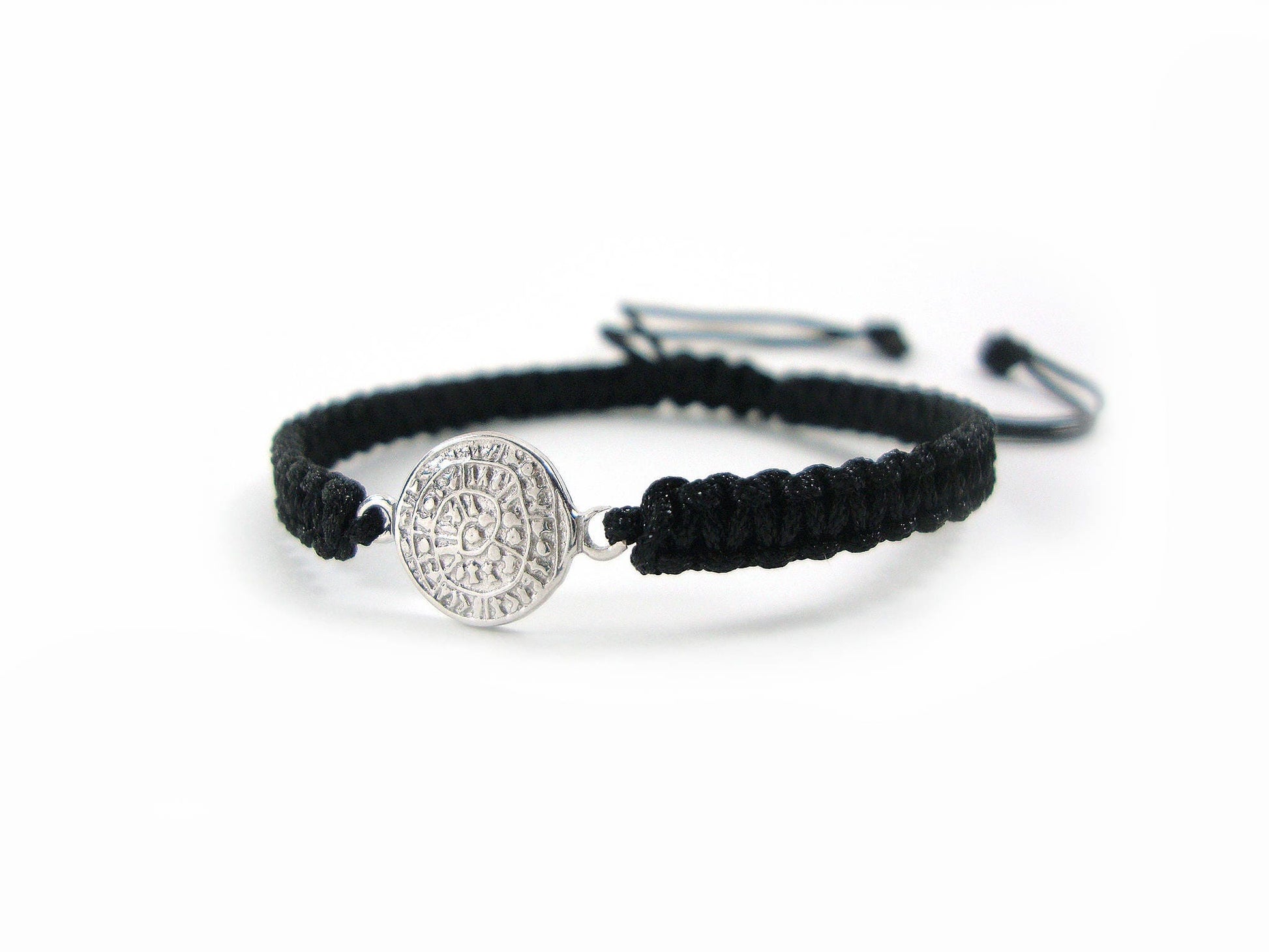 Sterling Silver 925 Ancient Greek Minoan Phaistos Disc 10mm Macrame Adjustable Bracelet , Phaistos Disc Armband, Bijoux Grecque