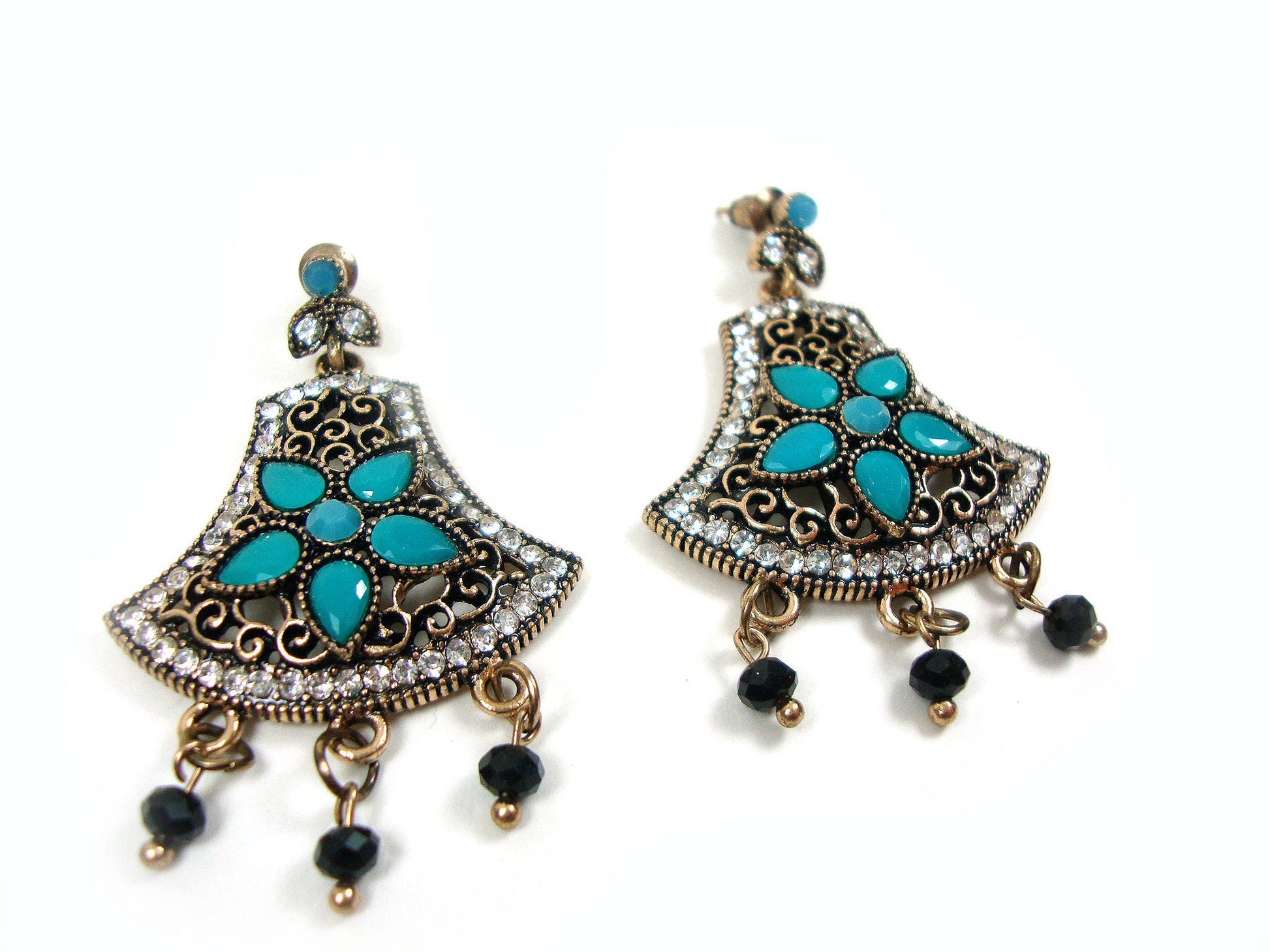 Greek Jewelry, Antique Style Blue-White Crystal Stones Vintage Dangle Earrings, Ethnic Antique Earrings, Byzantine Traditional Jewelry