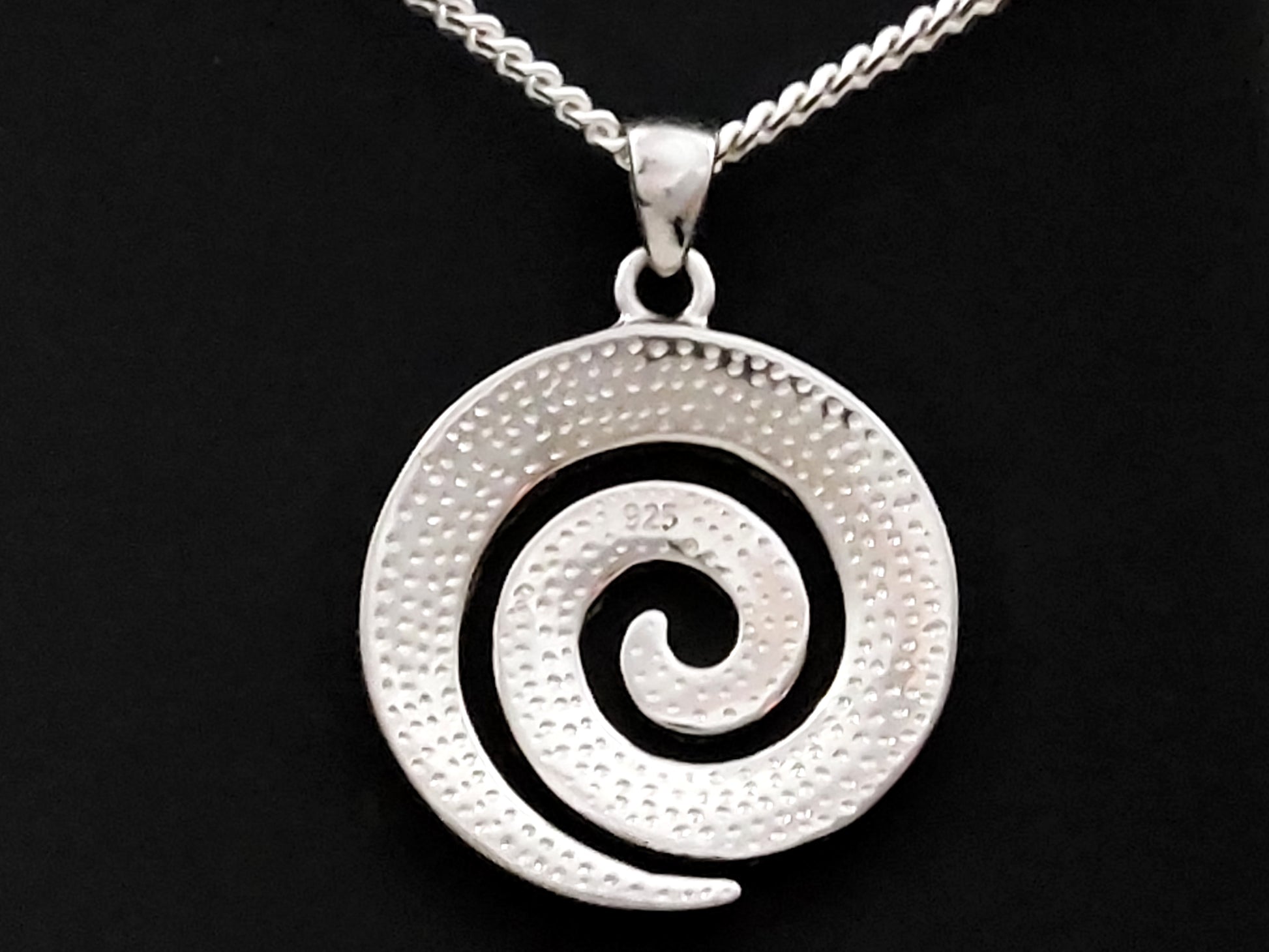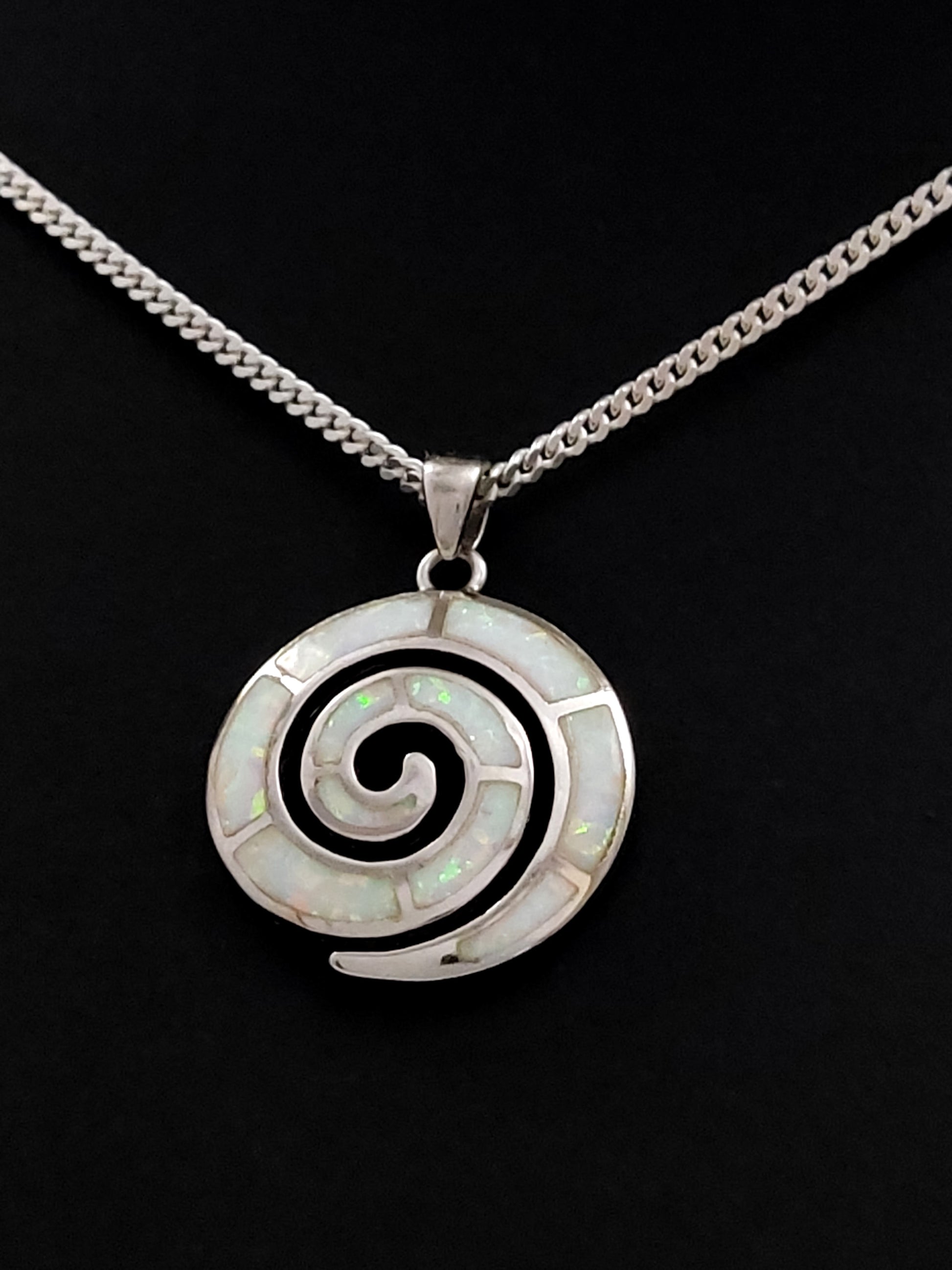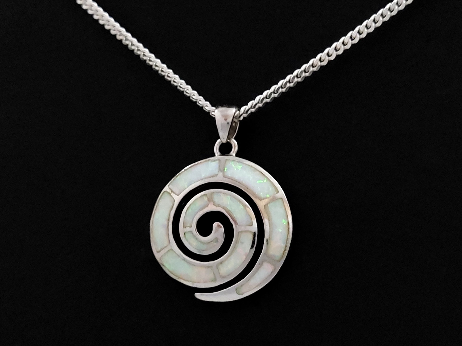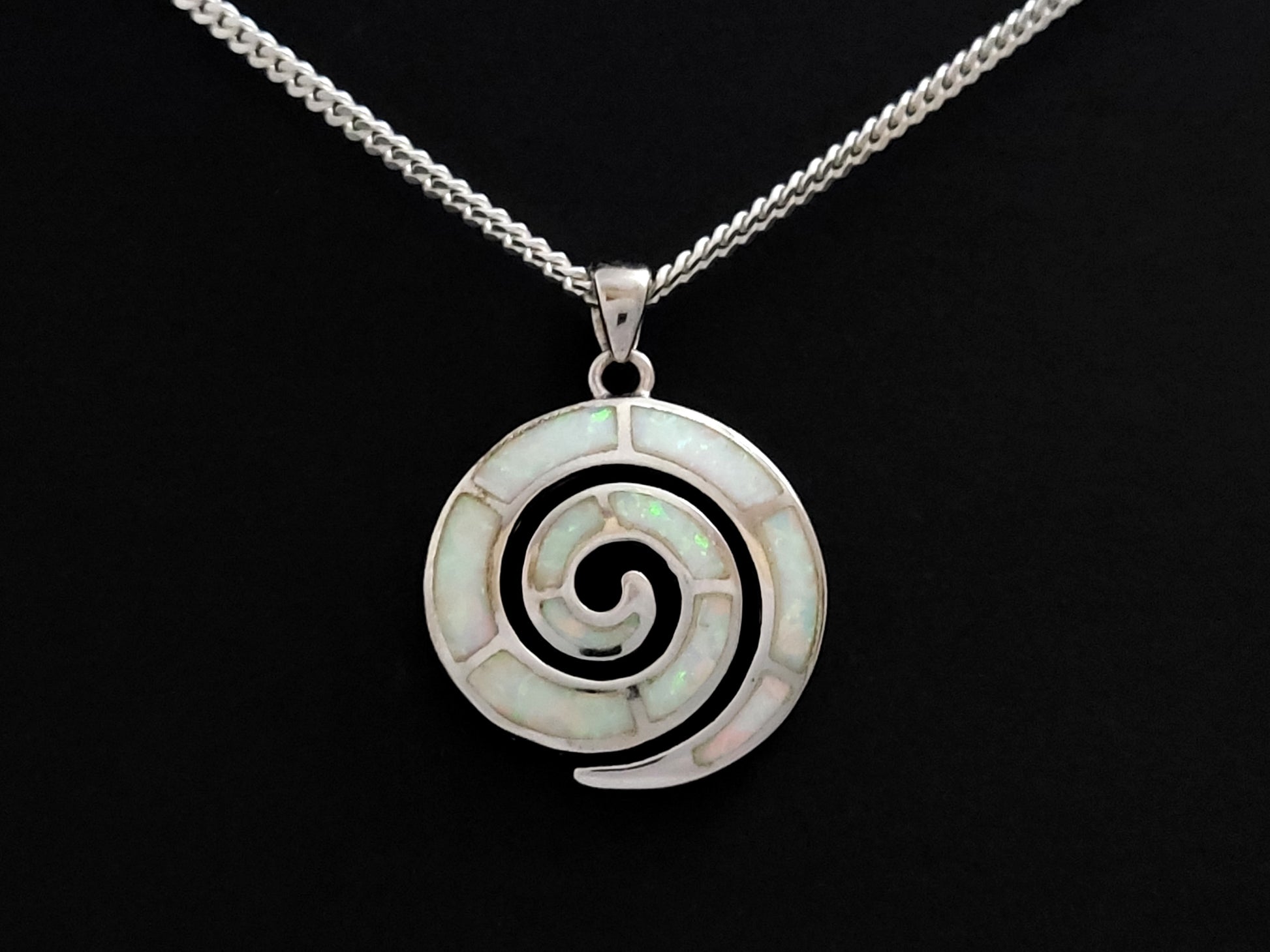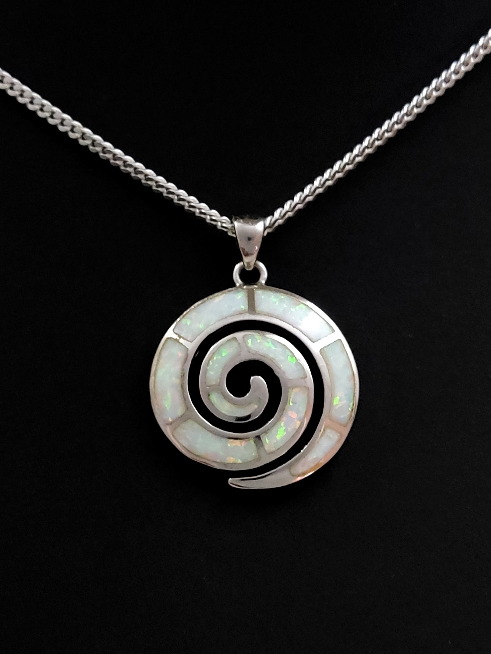 Greek Spiral White Opal Silver Pendant Necklace 23mm
