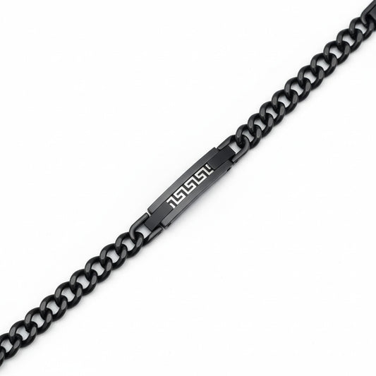 Stainless Steel Greek Key Bracelet - Black Silver Color