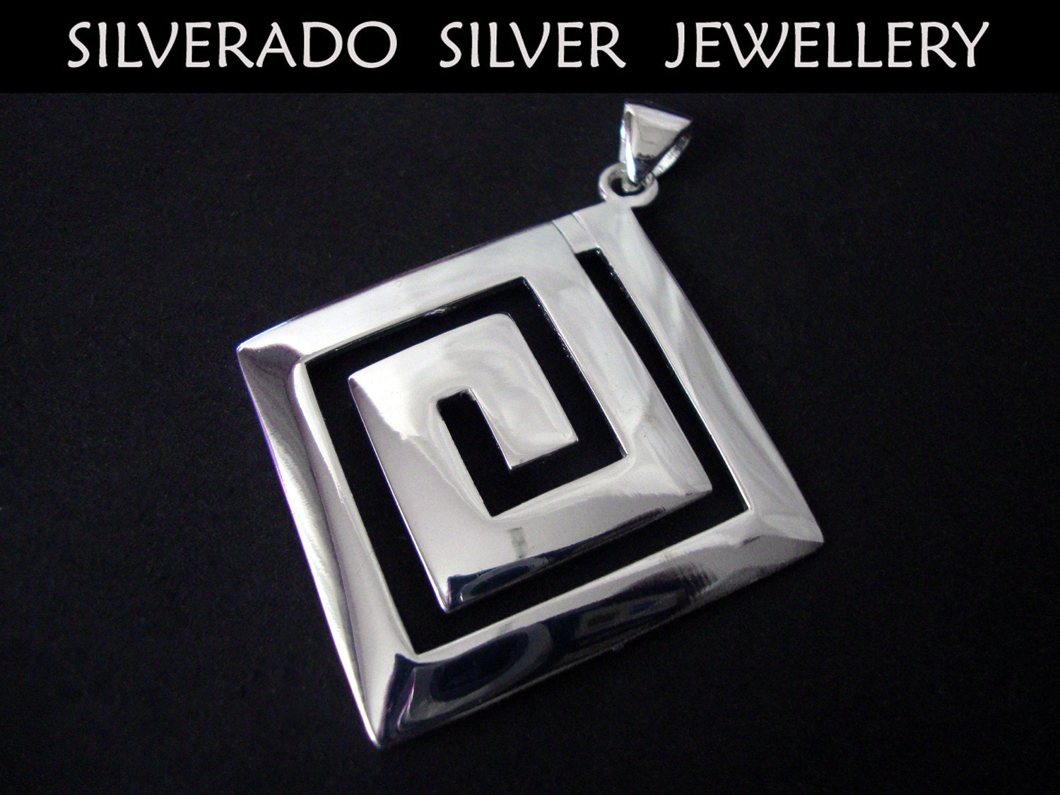 Sterling Silver 925 Ancient Greek Eternity Meander Key Pendant 50 mm