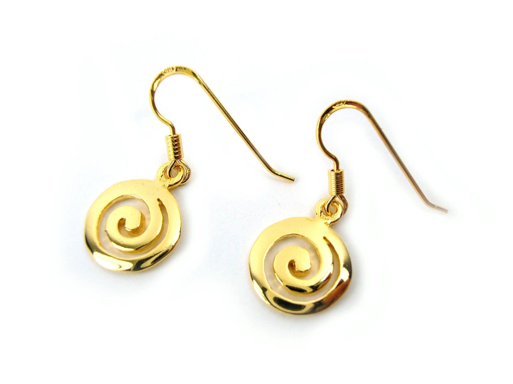 Sterling Silver 925 Ancient Greek Eternity Spiral Key Gold Plated 22K Earrings 12mm, Griechische Silber Ohrringe, Boucle Argent Grecque