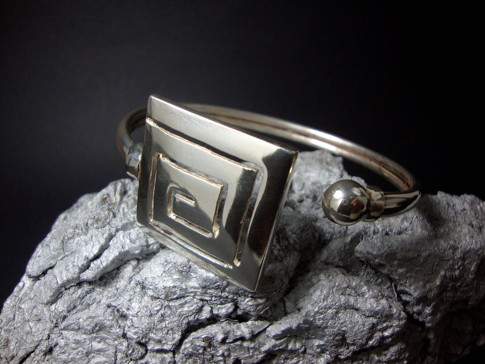 Sterling Silver 925 Ancient Greek Eternity Square Key Meander Bangle Bracelet, Greek Silver Meander Bracelet, Greek Jewelry, Griechische