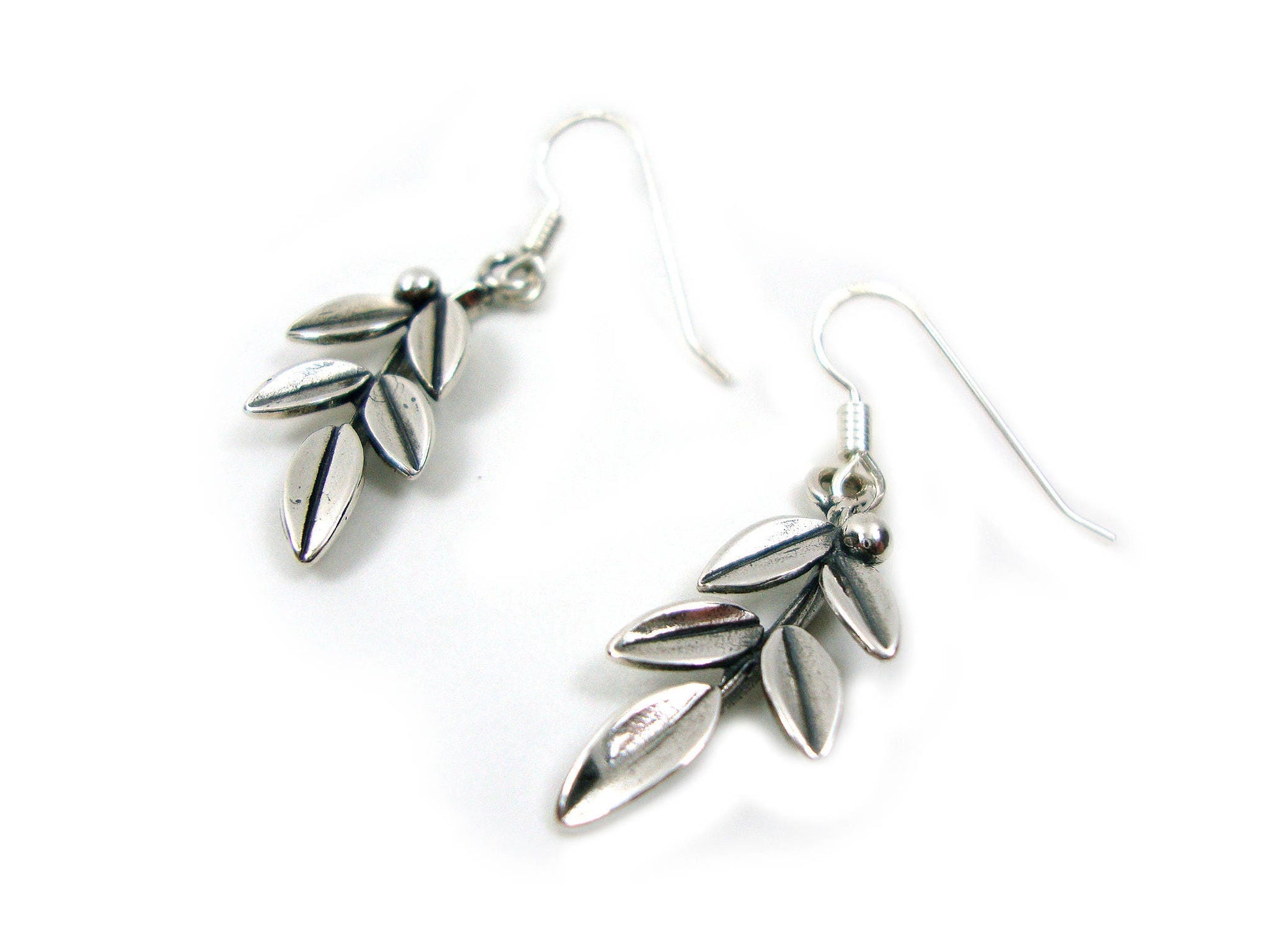 Sterling Silver 925 Ancient Greek Goddess Athena Olive Leaf Handmade Dangle Earrings, Griechische Silber Ohrringe, Bijoux Grecque En Argent