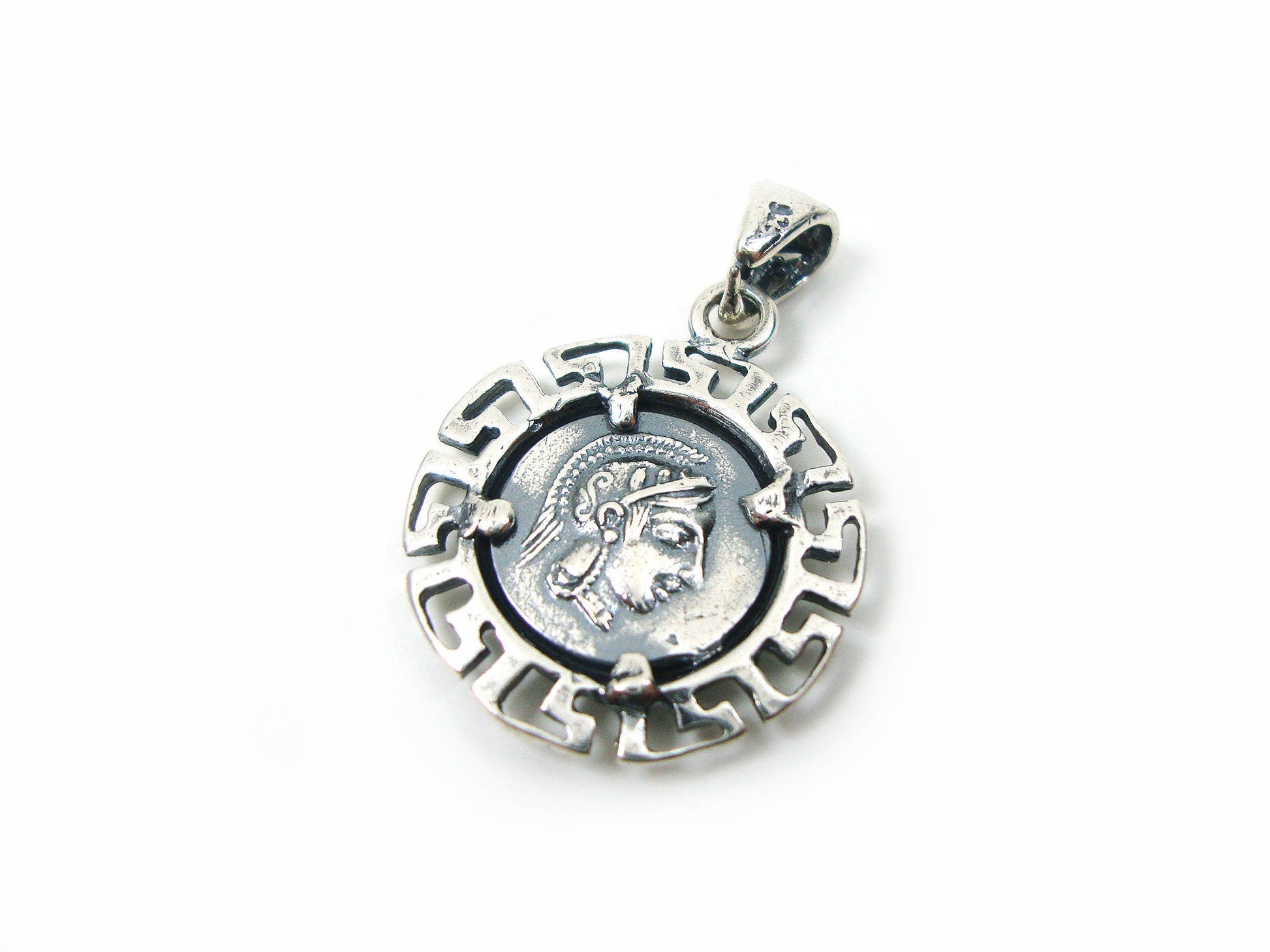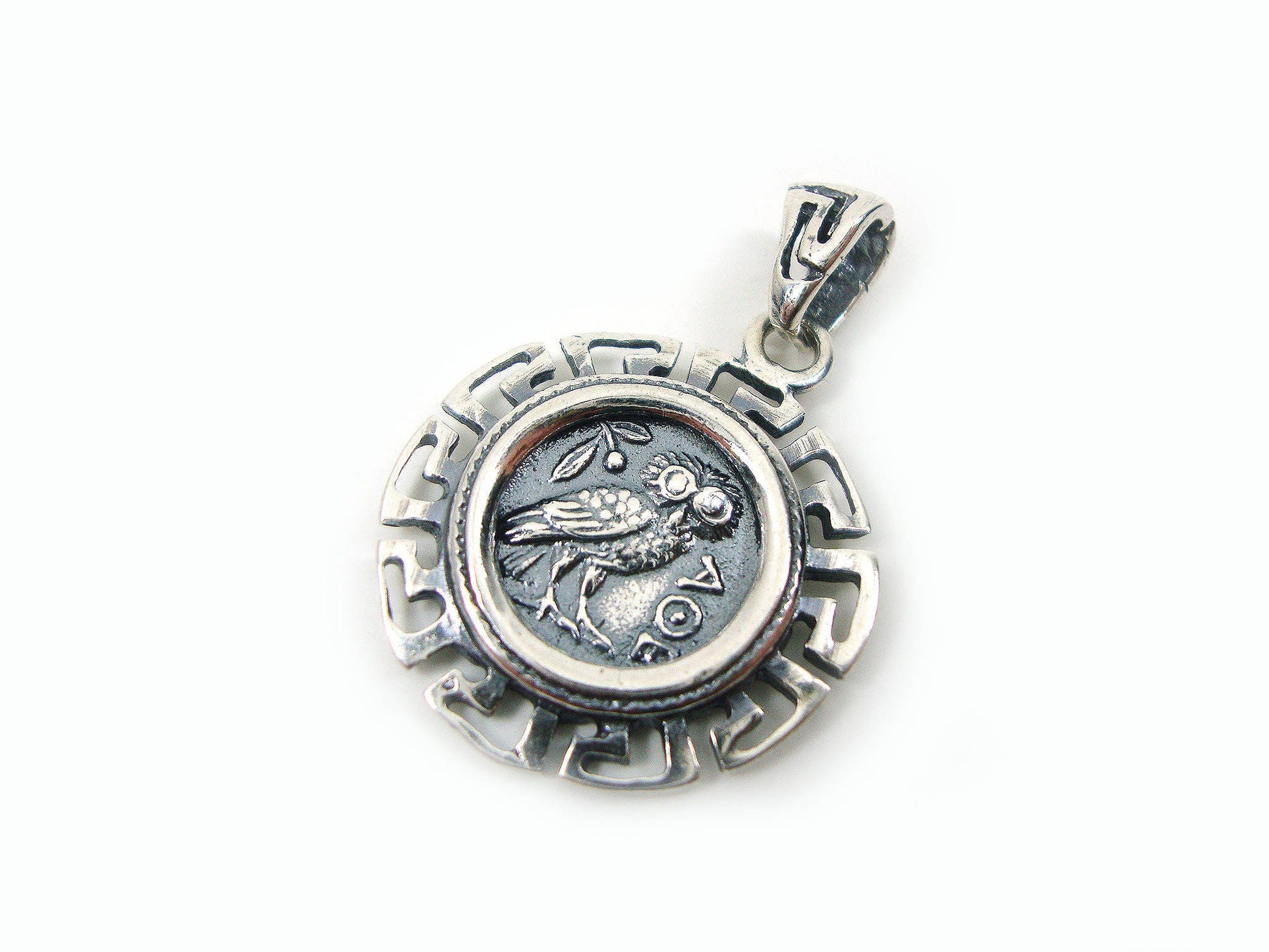 Sterling Silver 925 Ancient Greek Goddess Athena's Owl Coin 2-Sides Pendant, Griechische Silber Munze Anhanger, Pendetif Grecque Argent