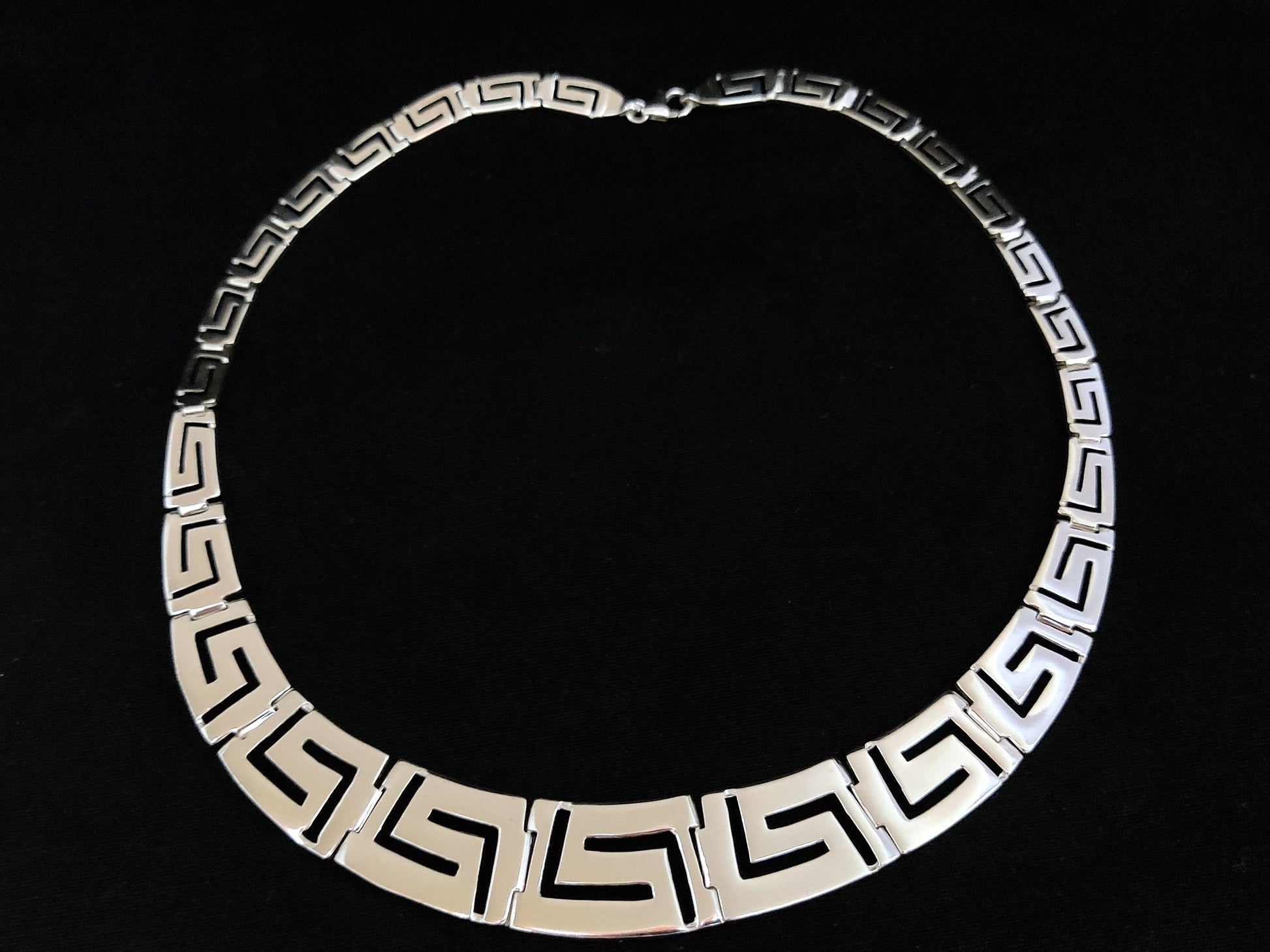 Sterling Silver 925 Ancient Greek Key Meander Gradual Grecian Wide Necklace ,Griechischer Silber Kette Schmuck, Collier Bijoux Grecque