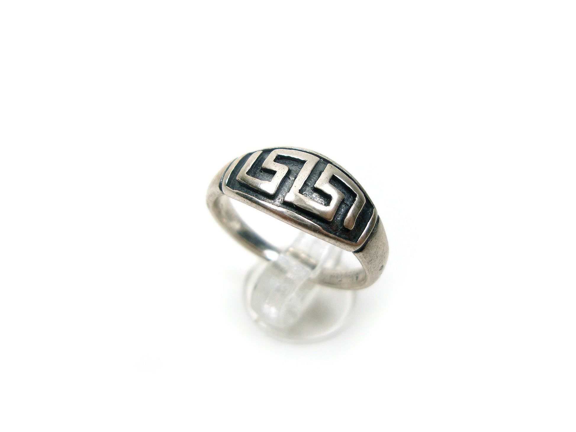 Sterling Silver 925 Ancient Greek Meander Eternity Oxidized Key, Griechische Silber Ring, Bijoux Grecque En Argent Bague, Greek Jewelry