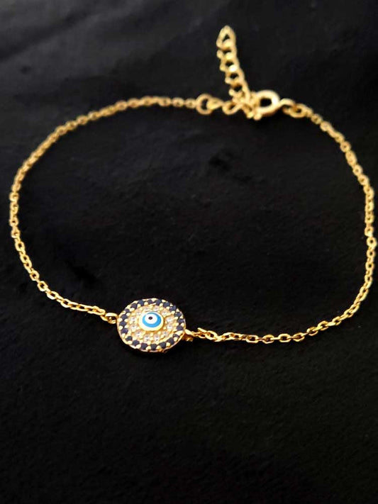 Evil Eye Silver Bracelet - Gold Plated Dark Blue Crystals