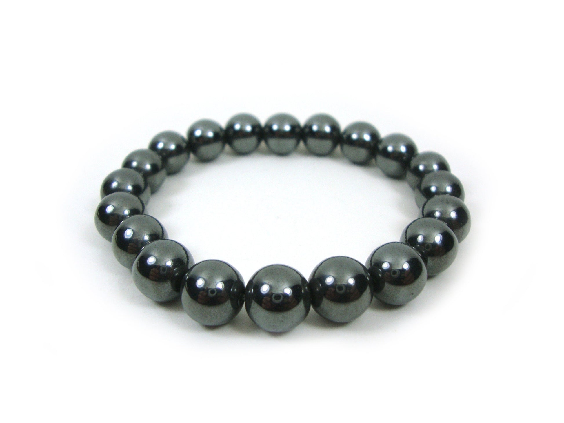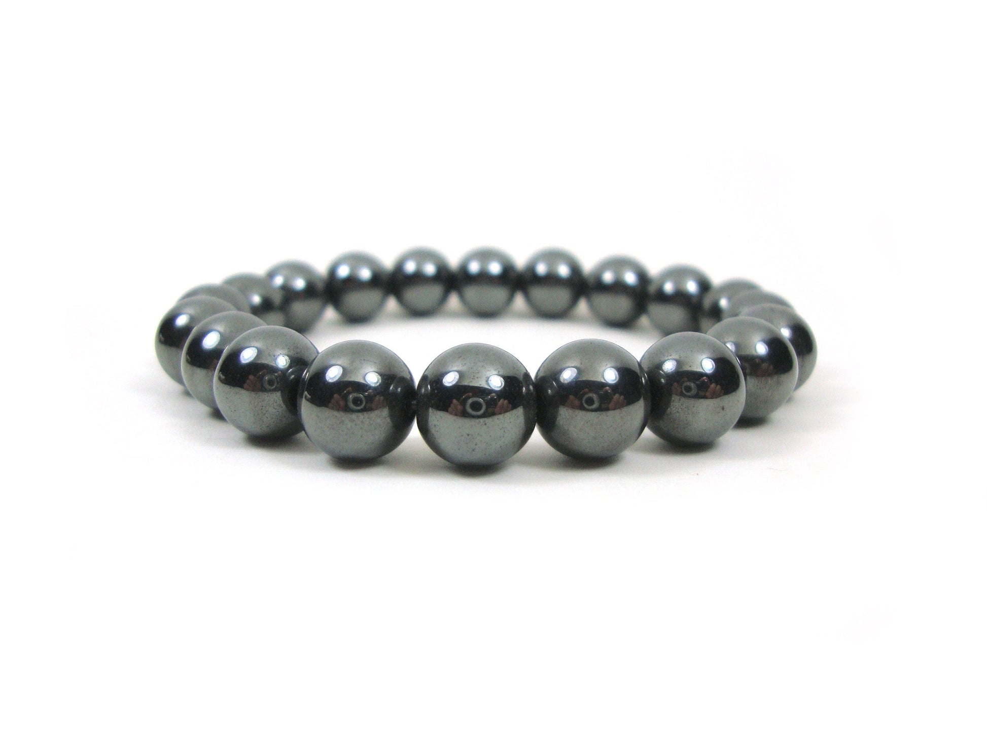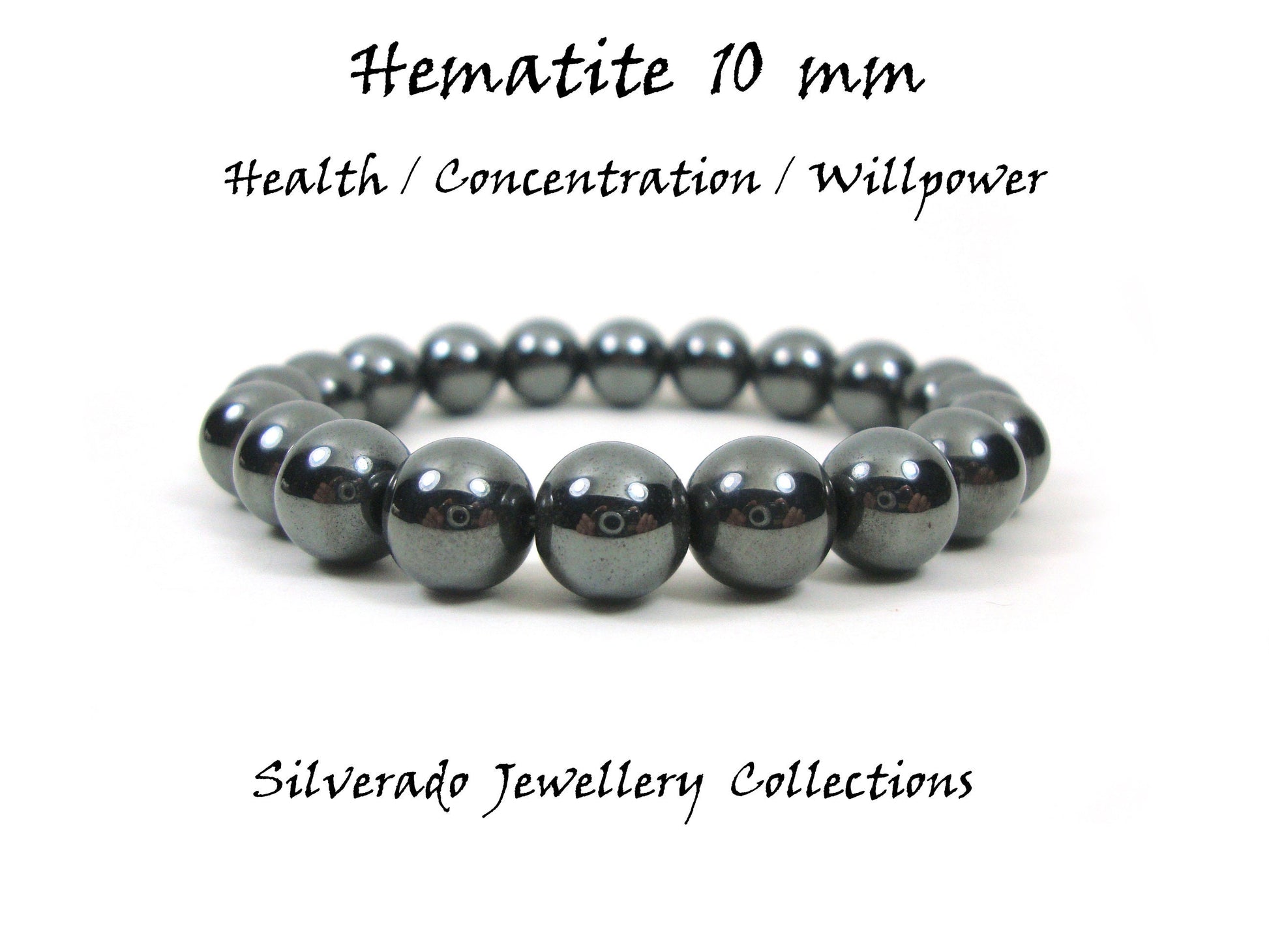Gemstone Bracelet Natural Hematite Health Concentration Willpower Stones 10mm, Men Women Unisex Bracelet, Hematite Stretch Boho Bracelet