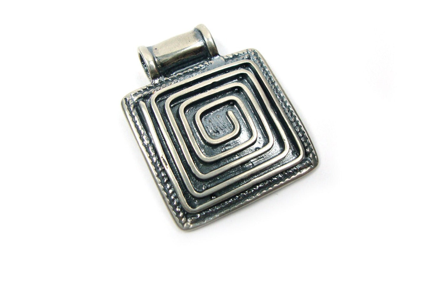 Greek Pendant, Meander Pendant, Greek Key Pendant, Greek Jewelry, Sterling Silver 925 Ancient Greek Key Oxidized Square Pendant 24x24mm