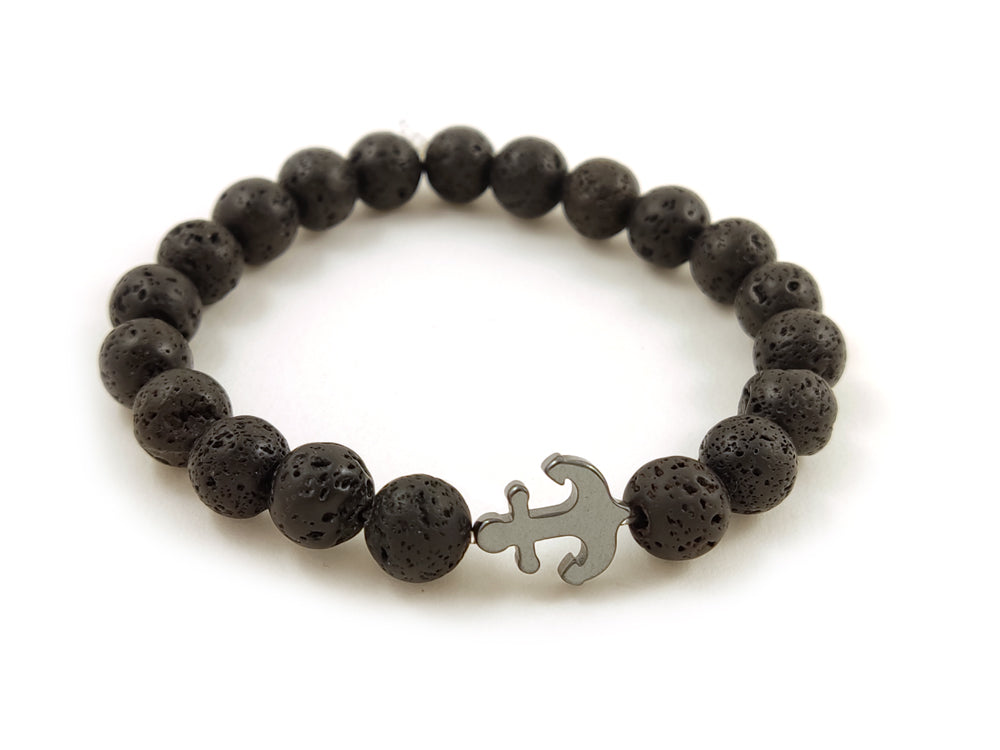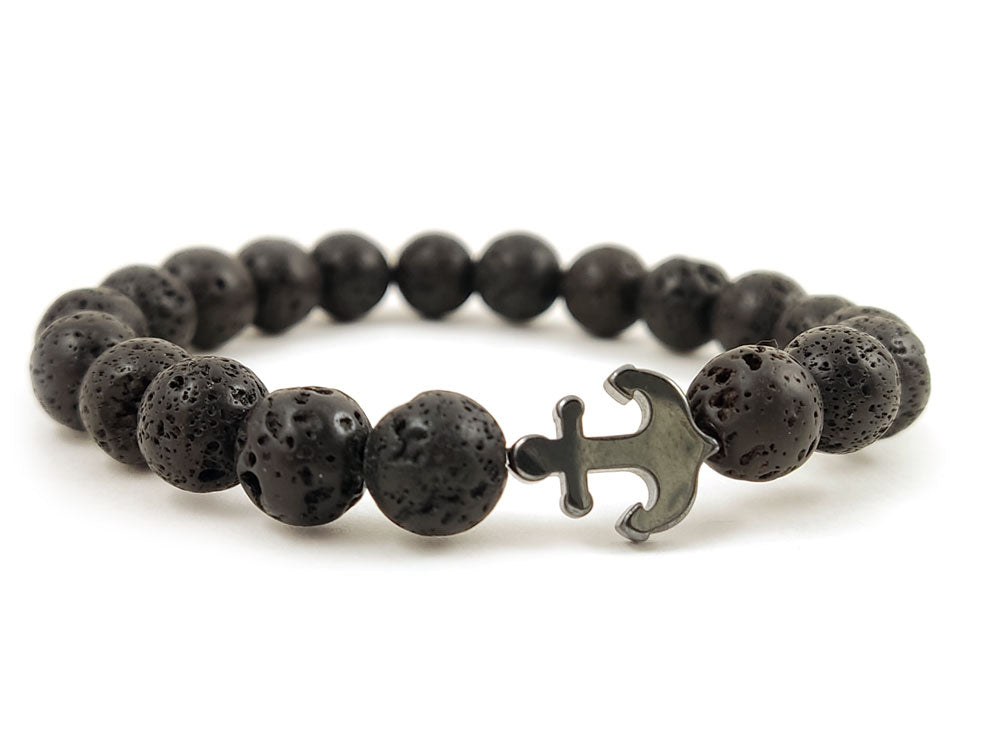Handmade Greek Lava Stones 8mm And Hematite Anchor Bracelet