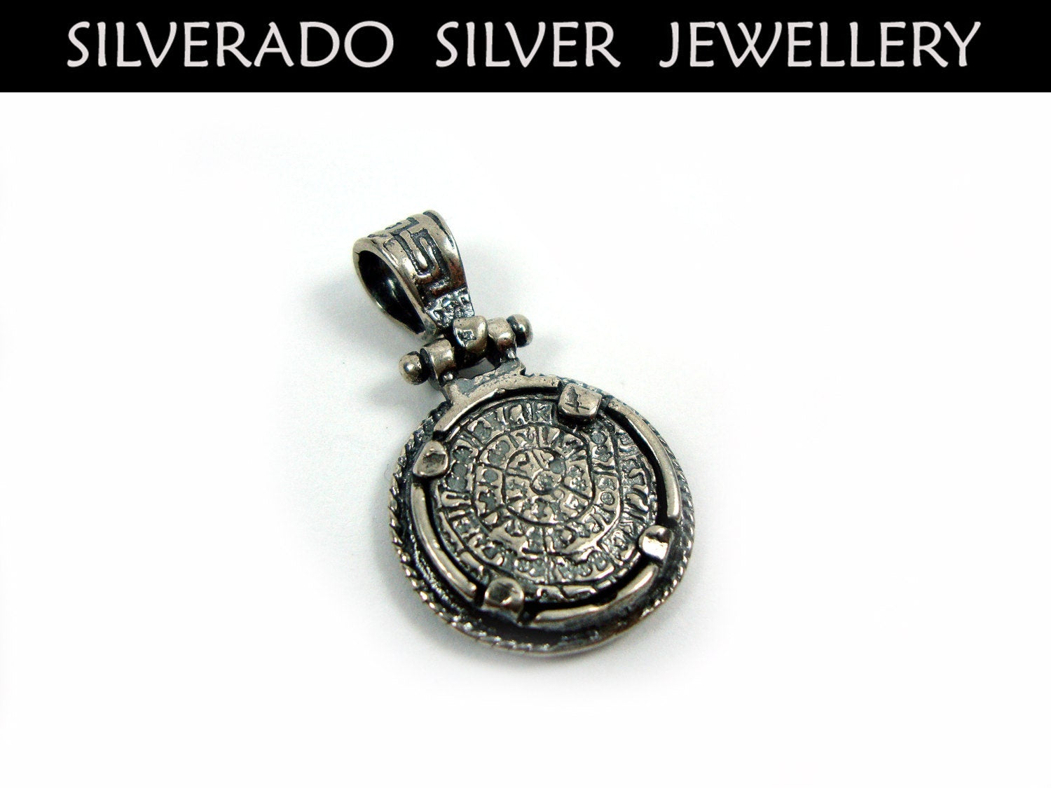 Sterling Silver 925 Ancient Greek Minoan Phaistos Disc Pendant 17 mm