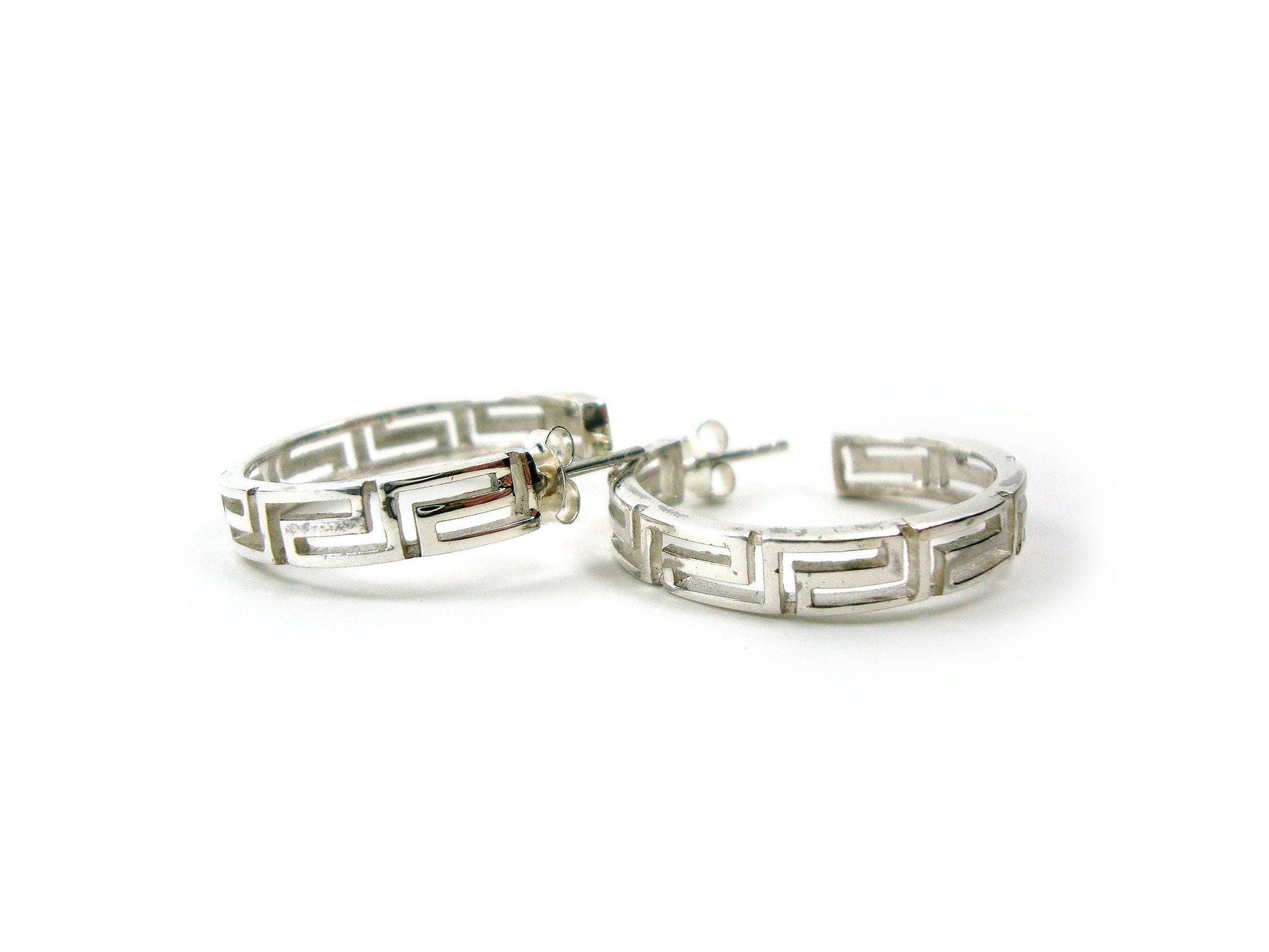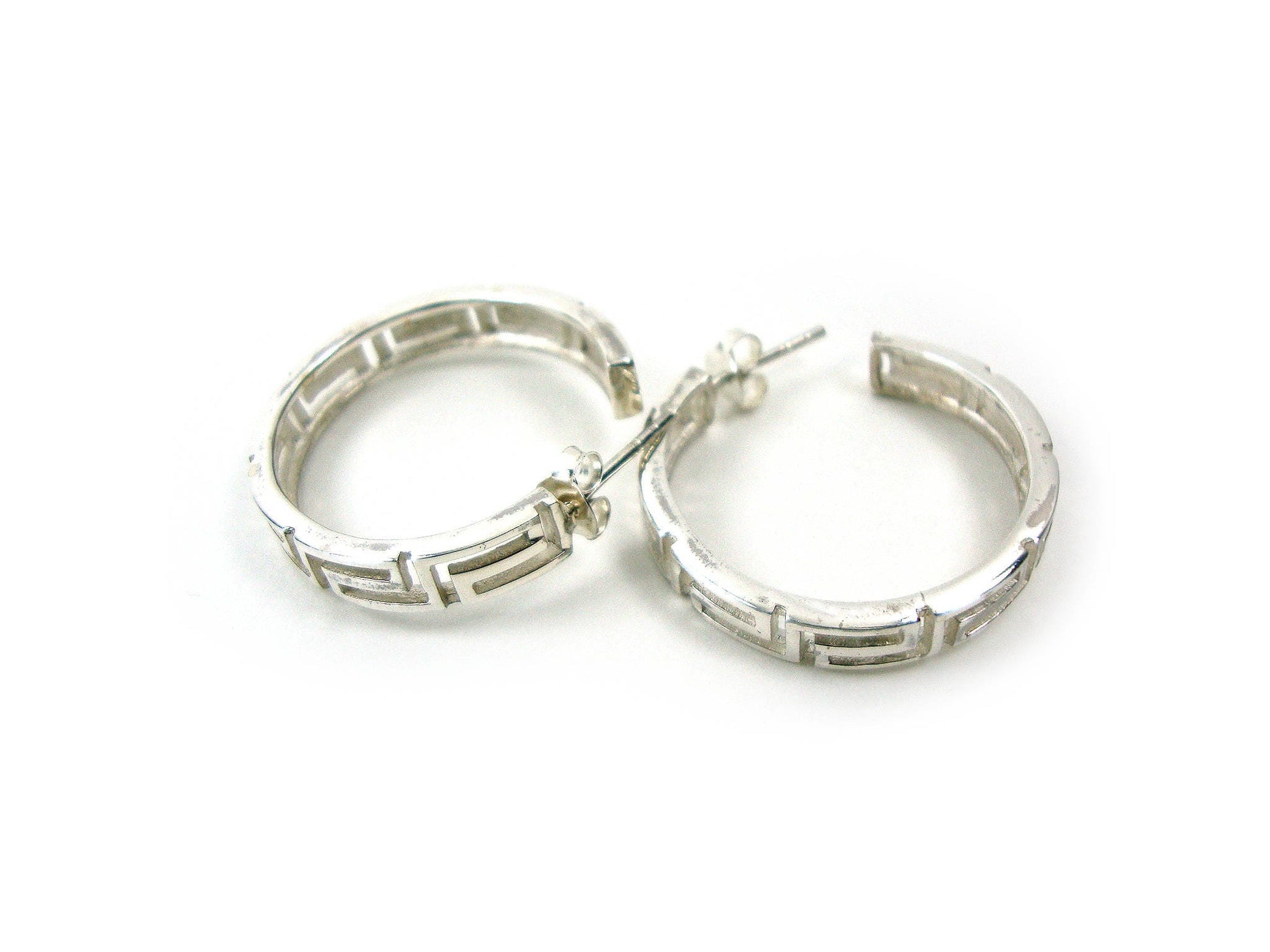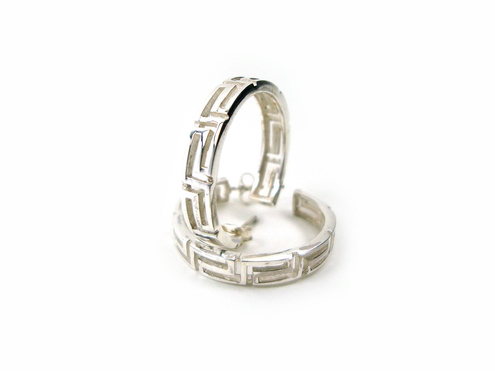 Sterling Silver 925 Greek Earrings , Greek Eternity Key Hoop Earrings 27mm , Griechische Ohrringe ,Boucles d'oreilles grecques