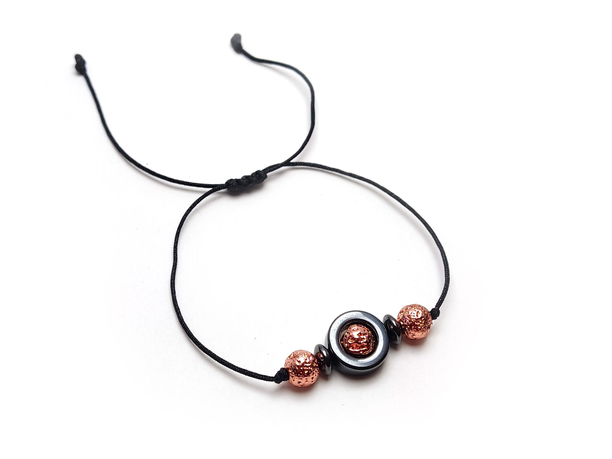 Volcanic Rose Gold Plated Lava & Hematite Stones Cord Adjustable Trendy Bracelet, Lava Stones Men Mens Women Unisex Macrame Cord Bracelet
