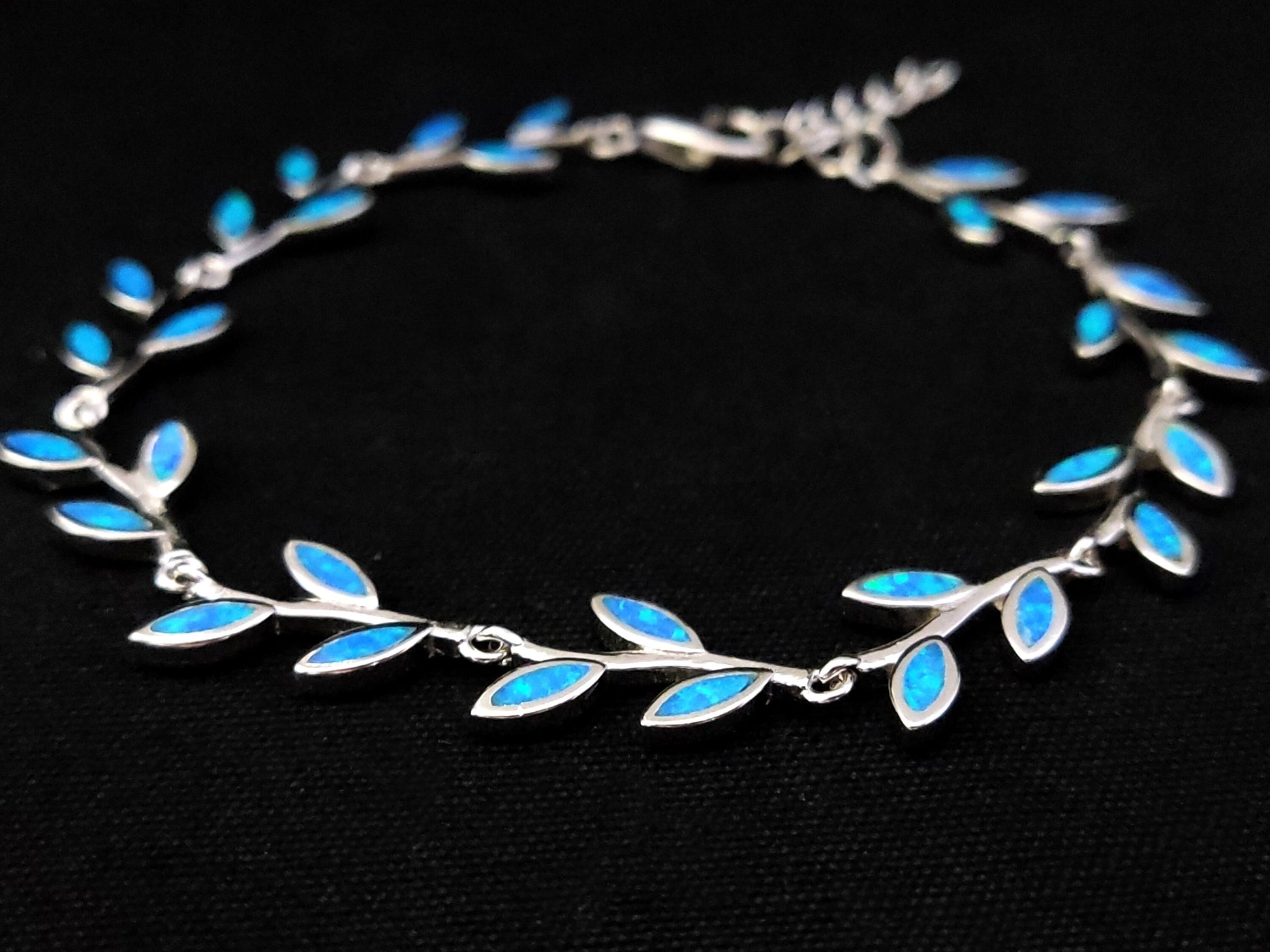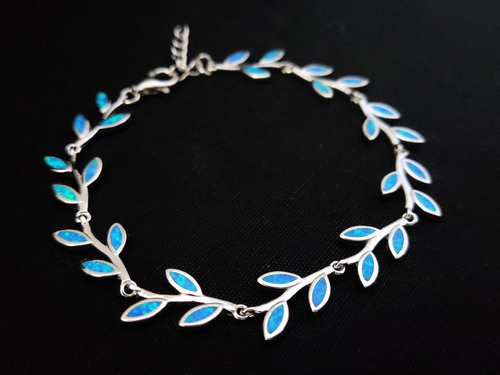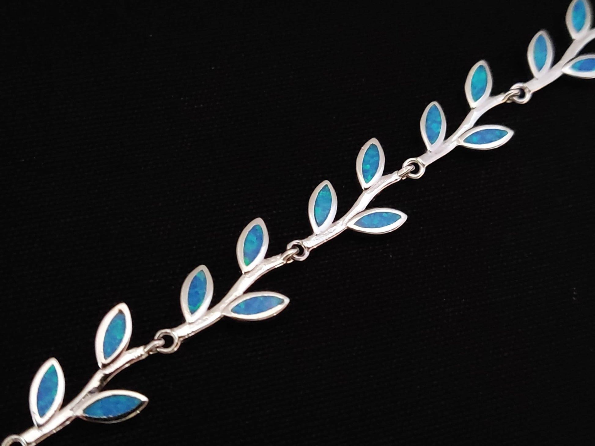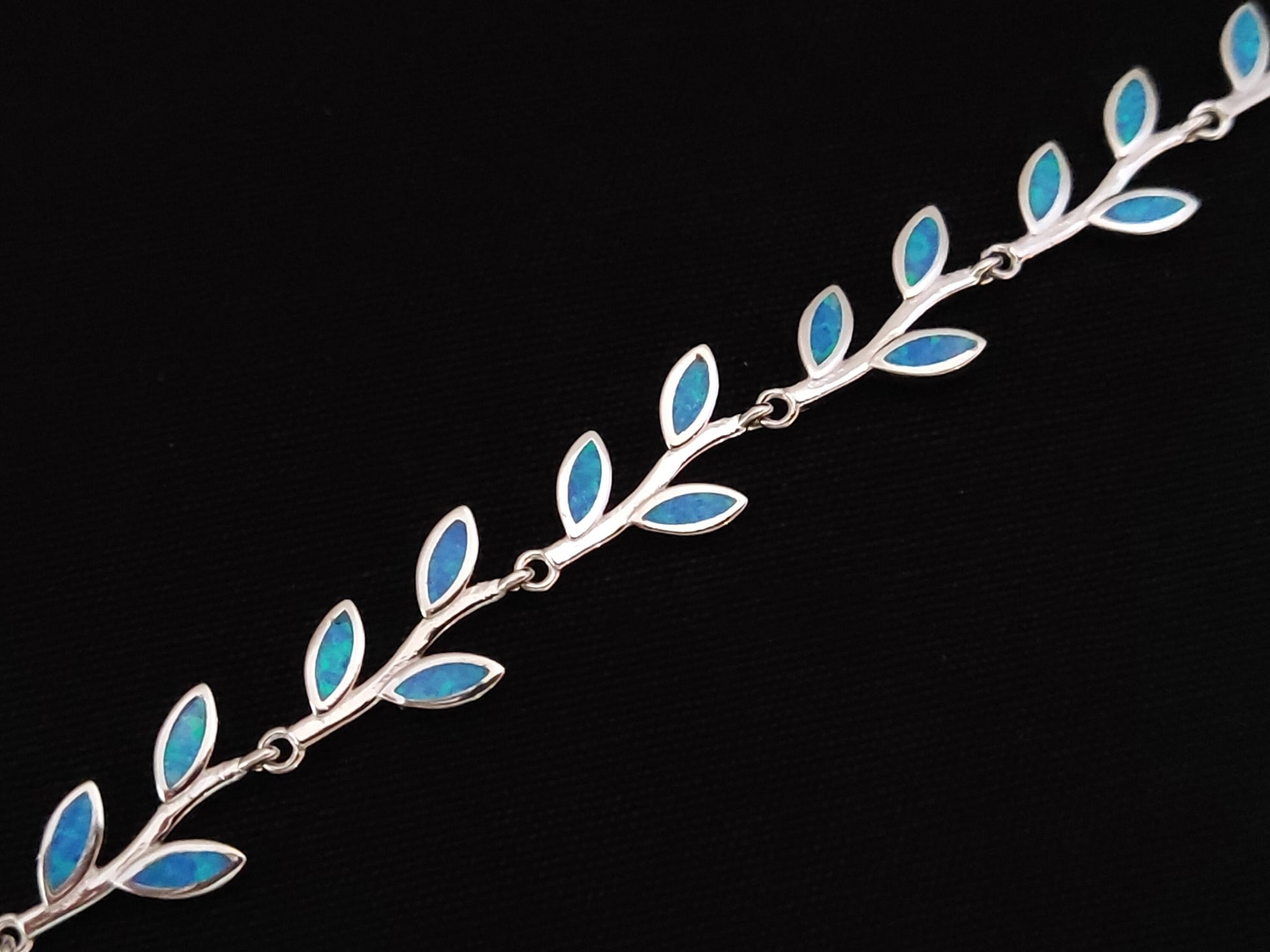 Greek Leaf Leaves Blue Opal Silver Bracelet