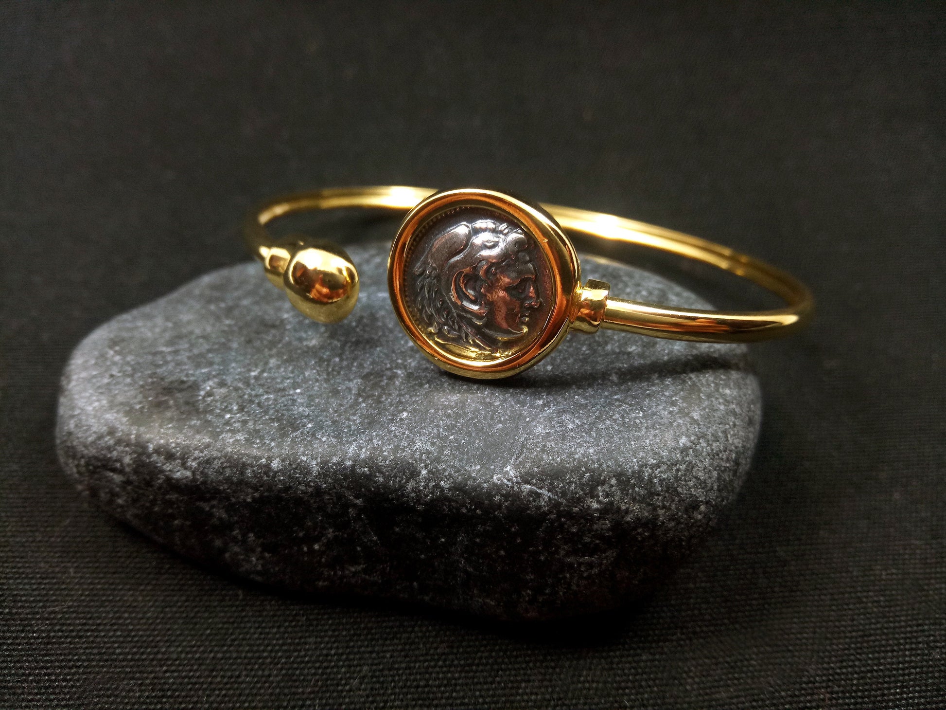 Embark on a journey through ancient Greece with our exquisite Alexander The Great Replica Ancient Greek Coin Sterling Silver Bracelet. Each piece is a homage to the rich heritage and unparalleled craftsmanship of Greek silver jewelry, meticulously recreated for the modern connoisseur.
