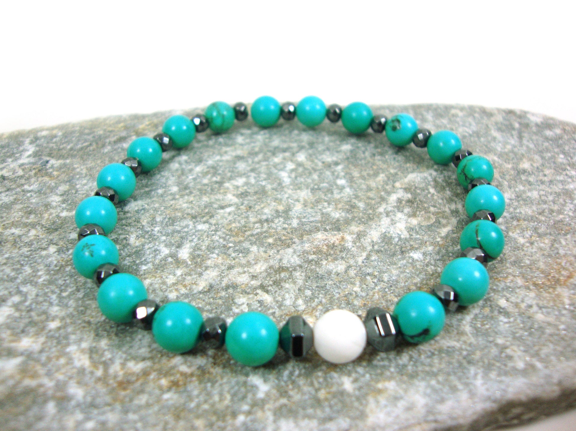 Natural Stones 6 mm Magnesite Onyx Bracelet, Turquoise Blue Stones Bracelet, Men Women Turquoise Bracelet, White Blue Stones Bracelet,