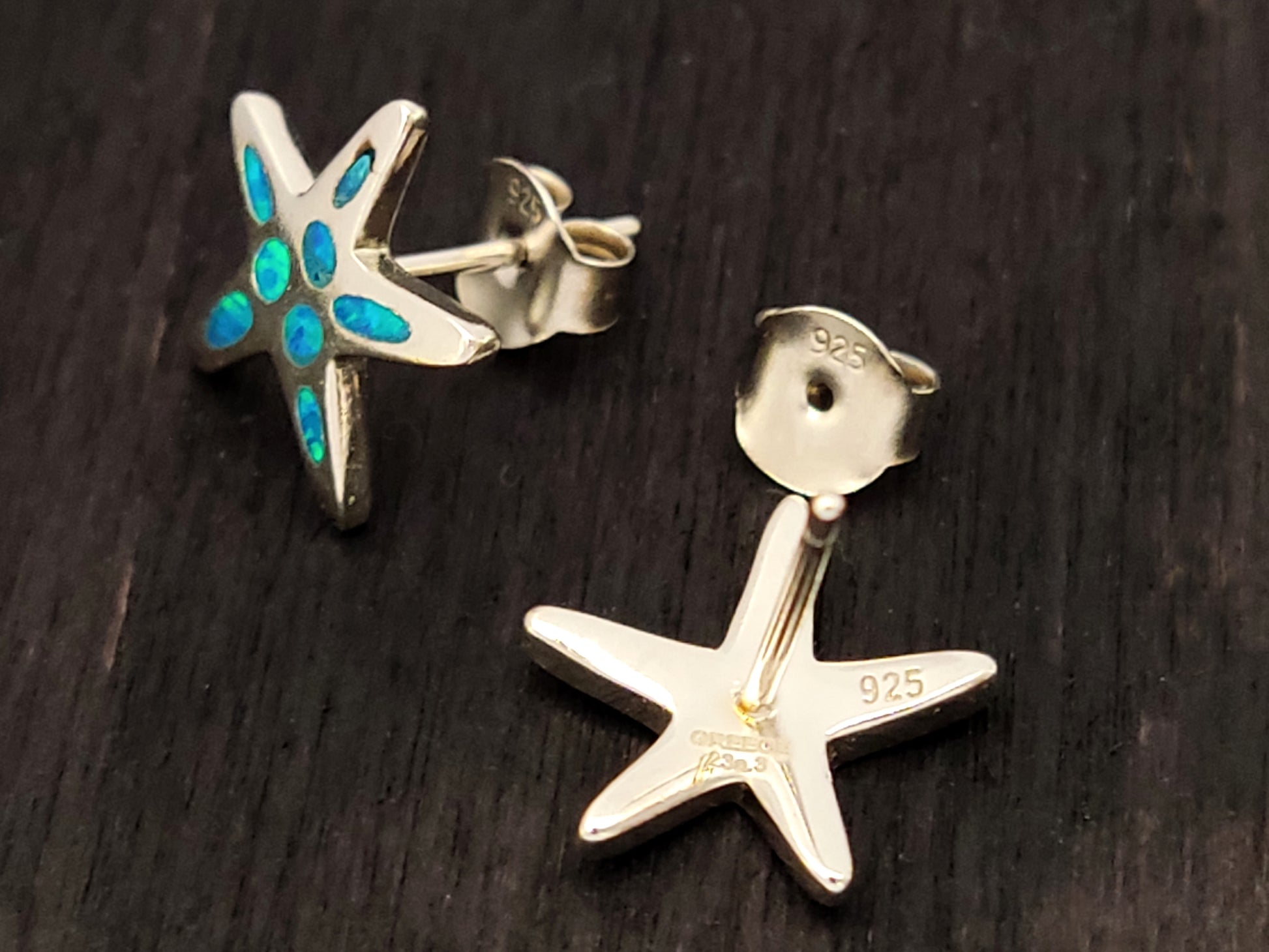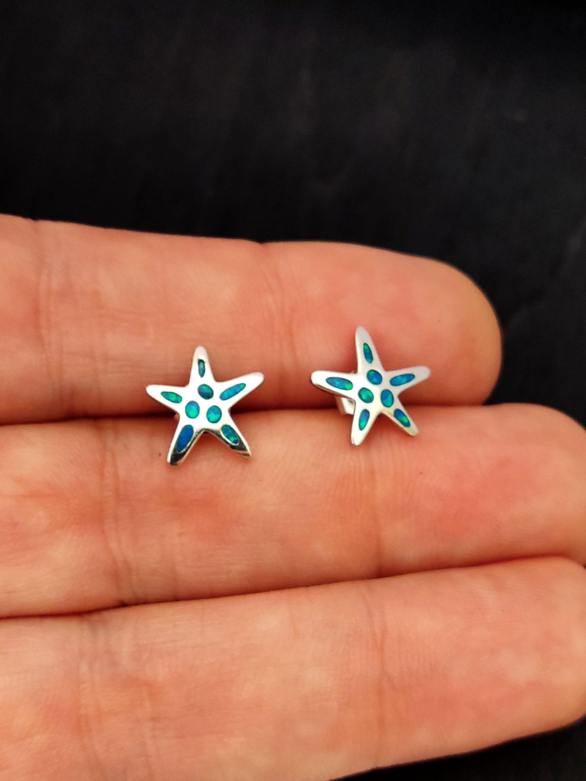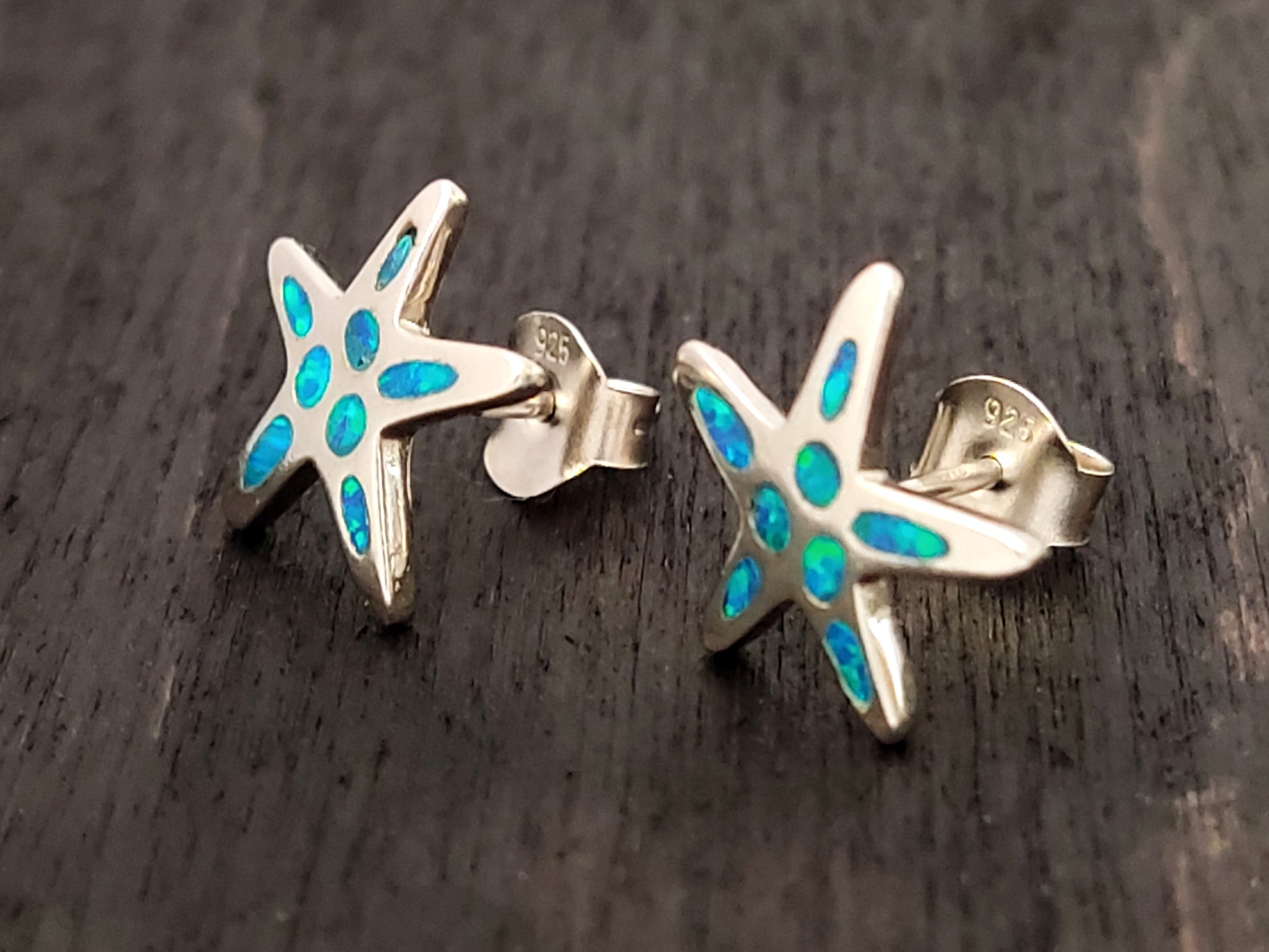 Starfish Blue Opal Silver Stud Earrings 12mm