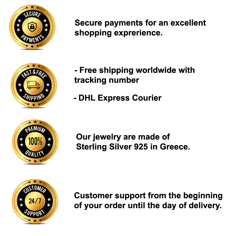 Our shop sells elegant Greek jewelry made of Sterling Silver 925 in a variety of Greek symbols and designs. Our silver Greek jewelry collections include bracelets, necklaces, earrings, rings, pendants and all sort of traditional jewelry from Greece.