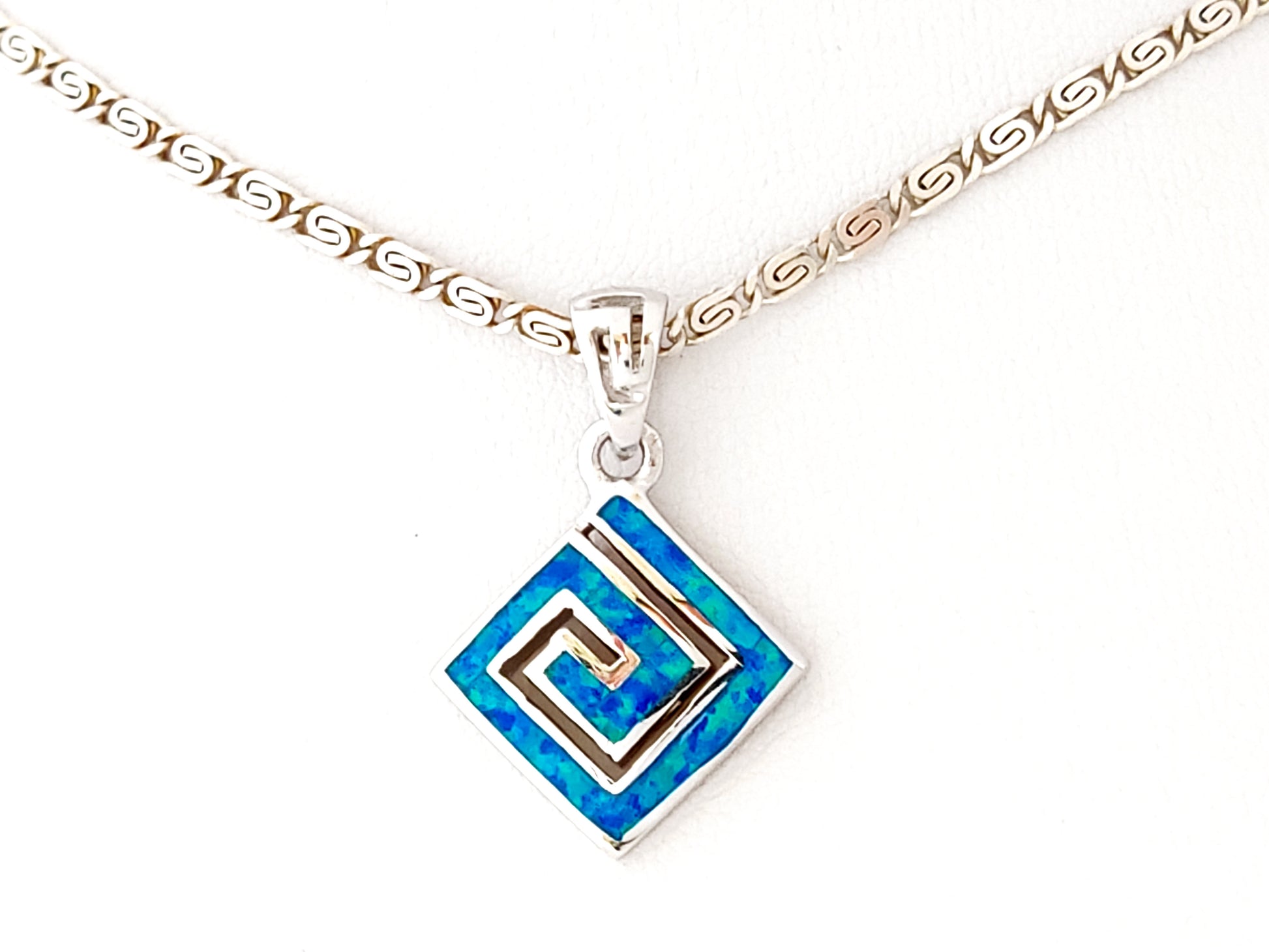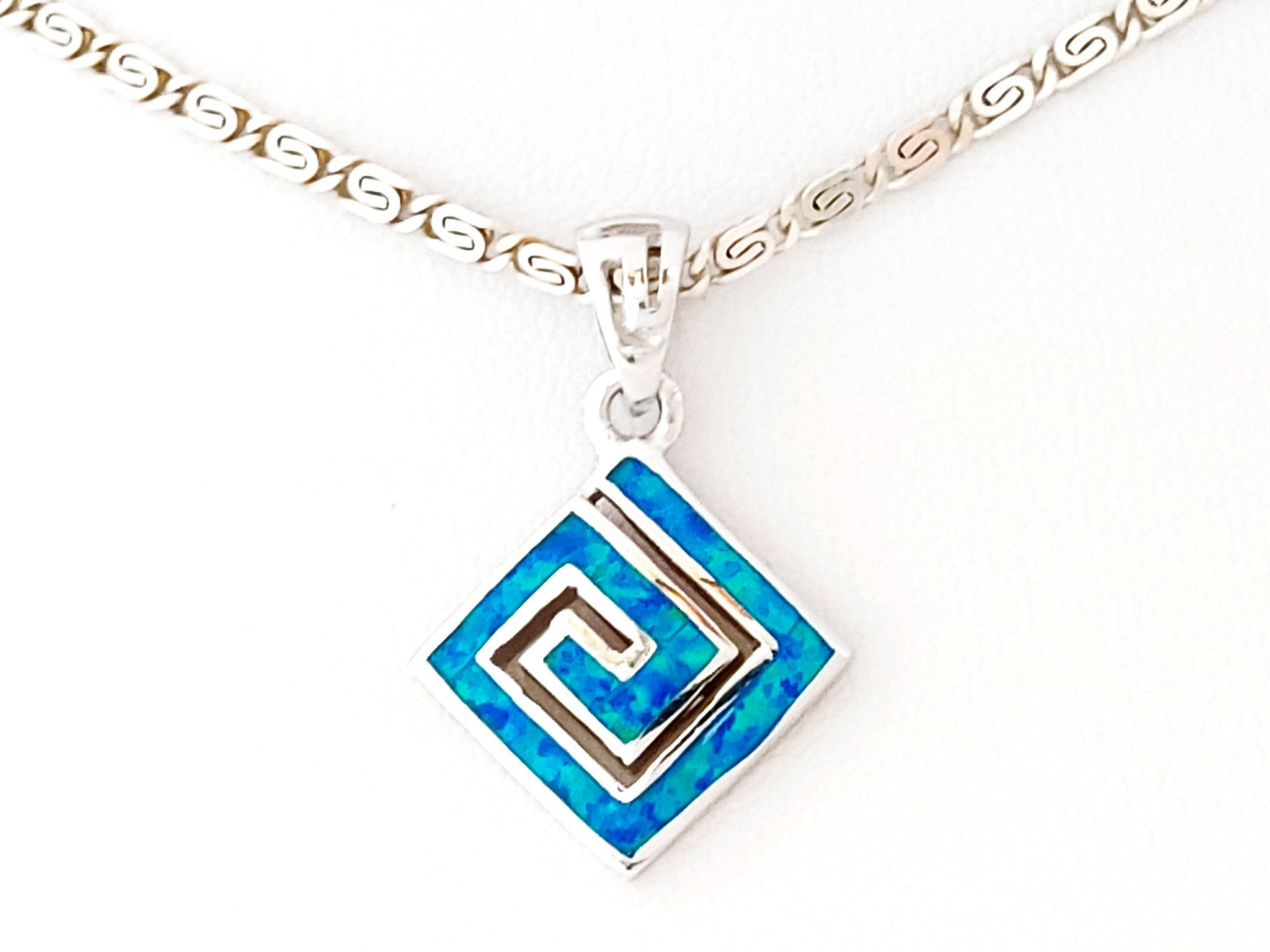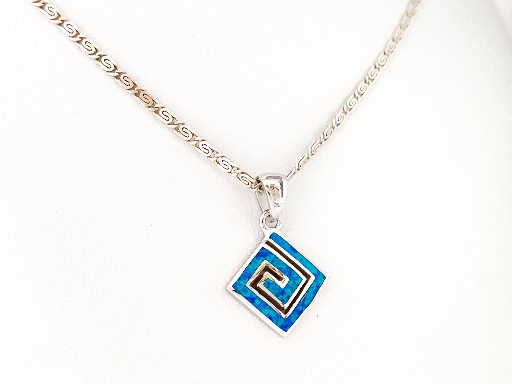 Blue Opal Silver Greek Necklace Pendant 12x12mm