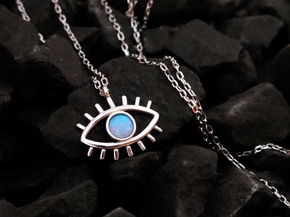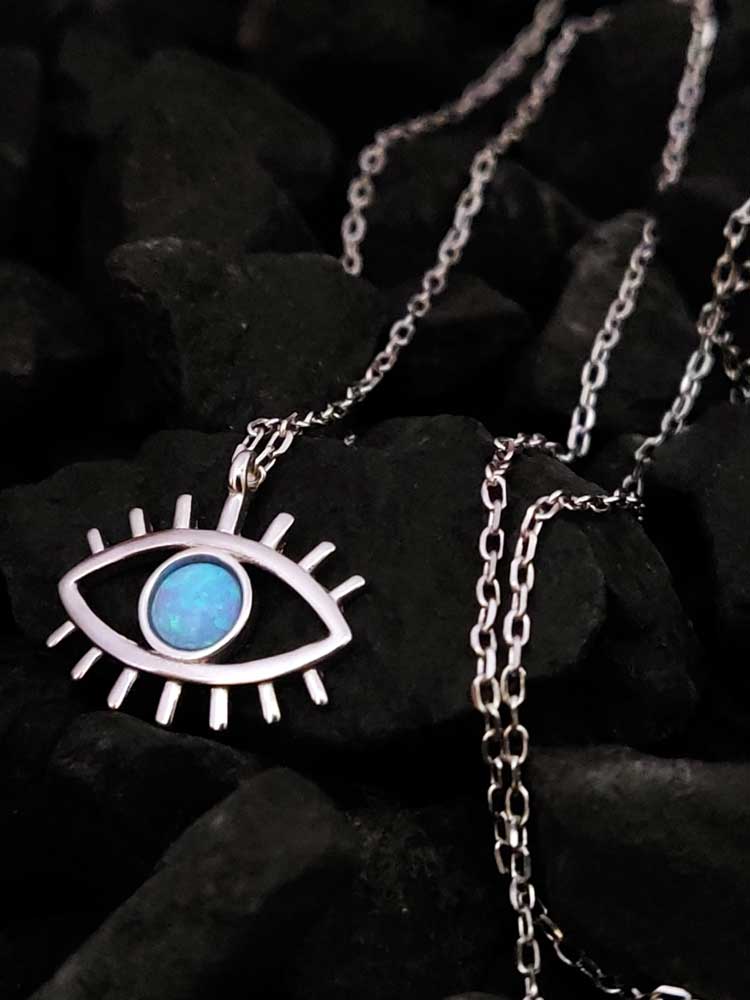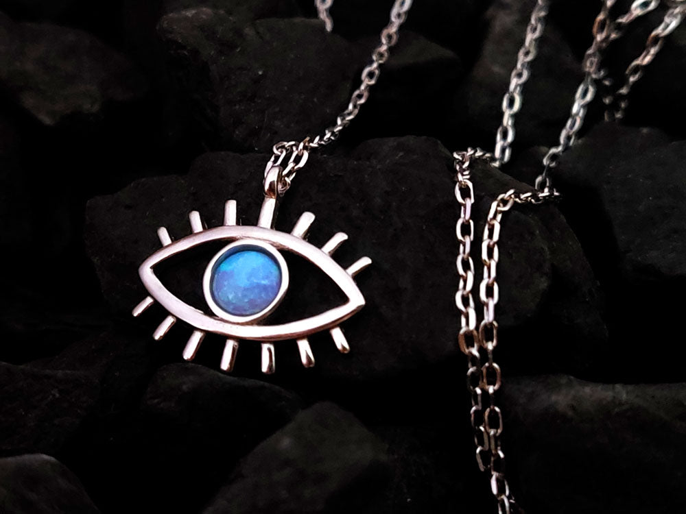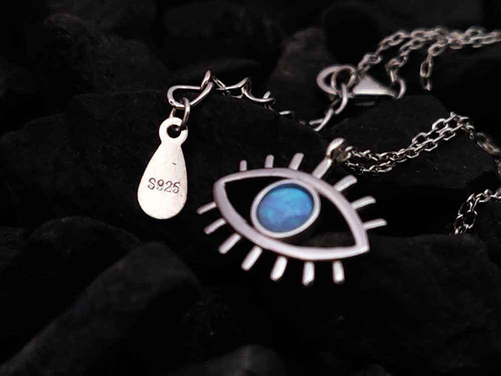 Evil Eye Blue Opal Silver Chain Necklace 15x10mm