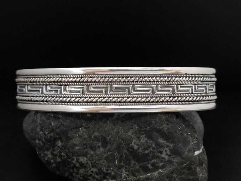 Greek Silver Cuff Bracelet 15mm, Greek Key Meander Men Women Unisex Jewelry From Greece