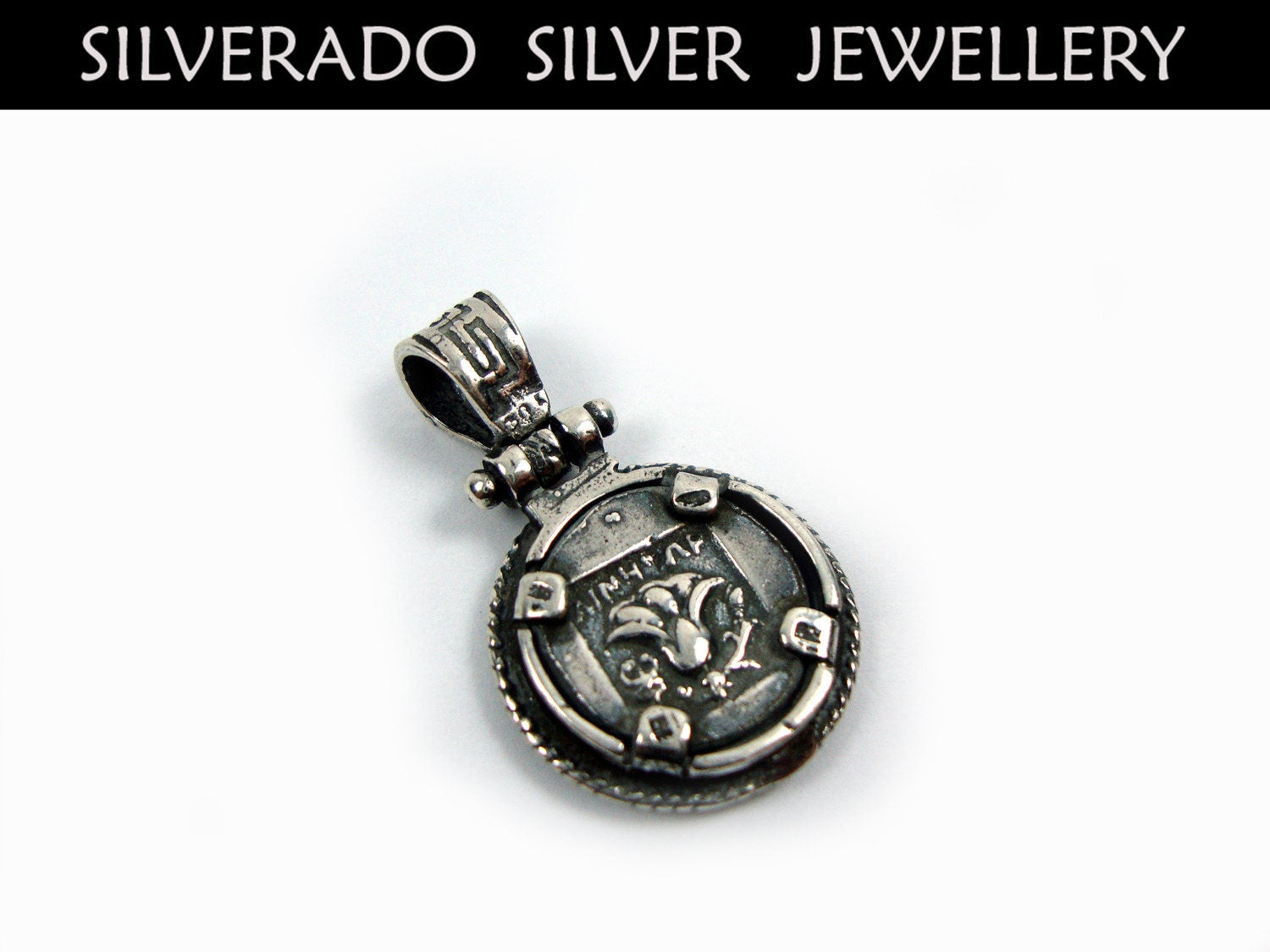 Sterling Solid Silver 925 Ancient Greek Jewelry Replica Coin Didrachmon Helios God Of Sun From Rhodes 17 mm, Greek Pendant , Greek Coin