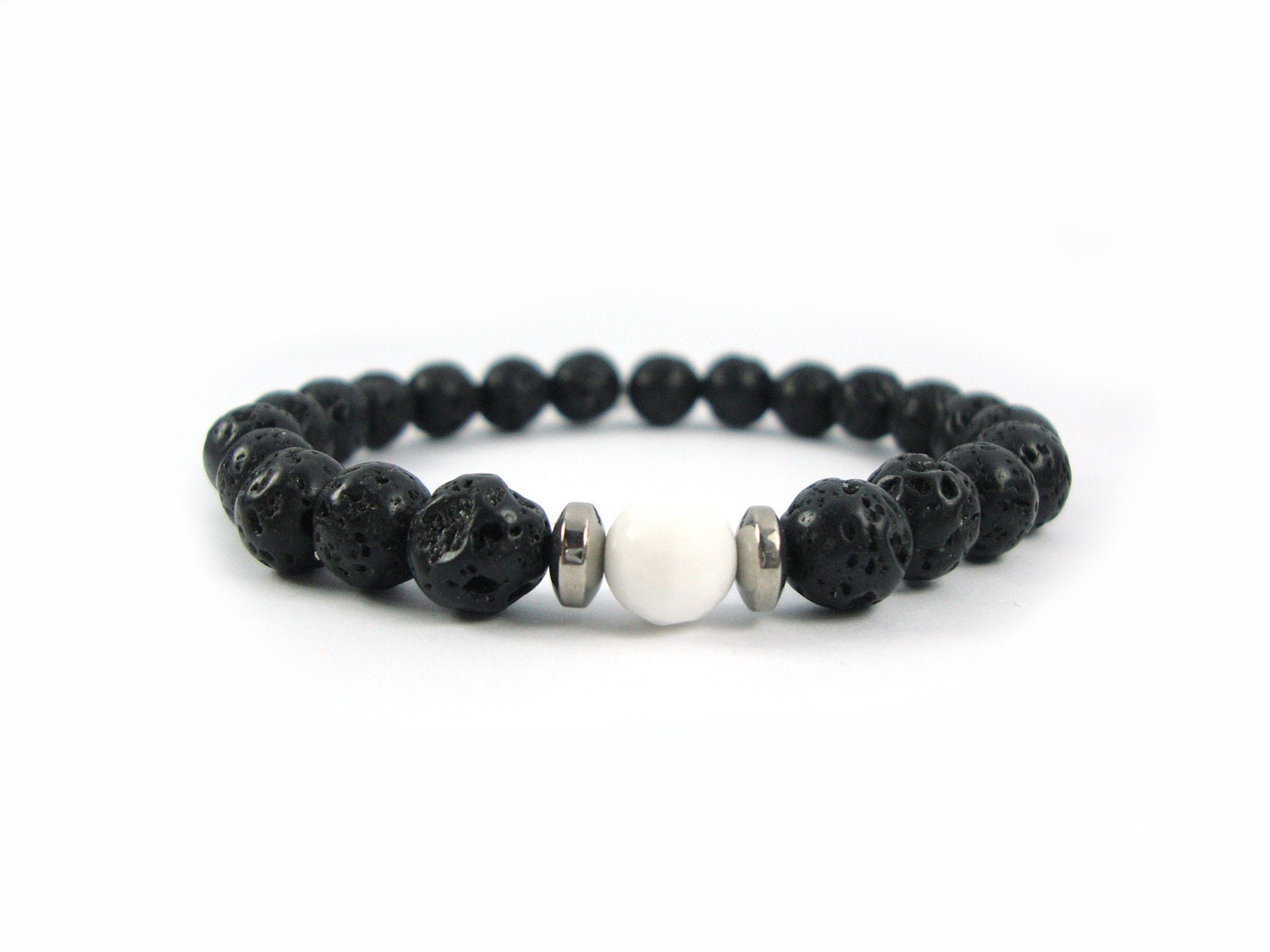 Santorini Natural Black Volcanic Lava 8mm White Onyx 8mm Handmade Greek Men Women Unisex Bracelet