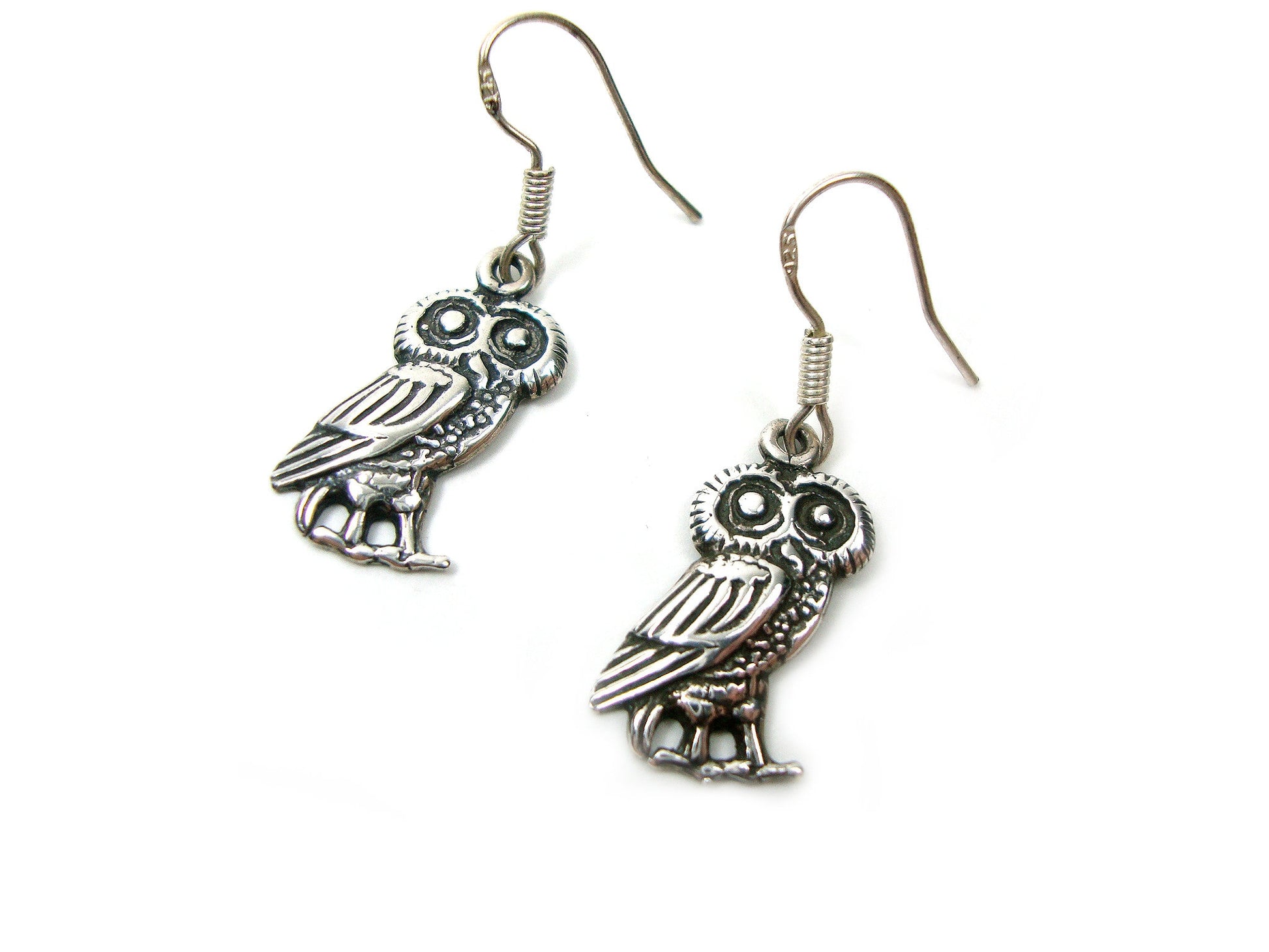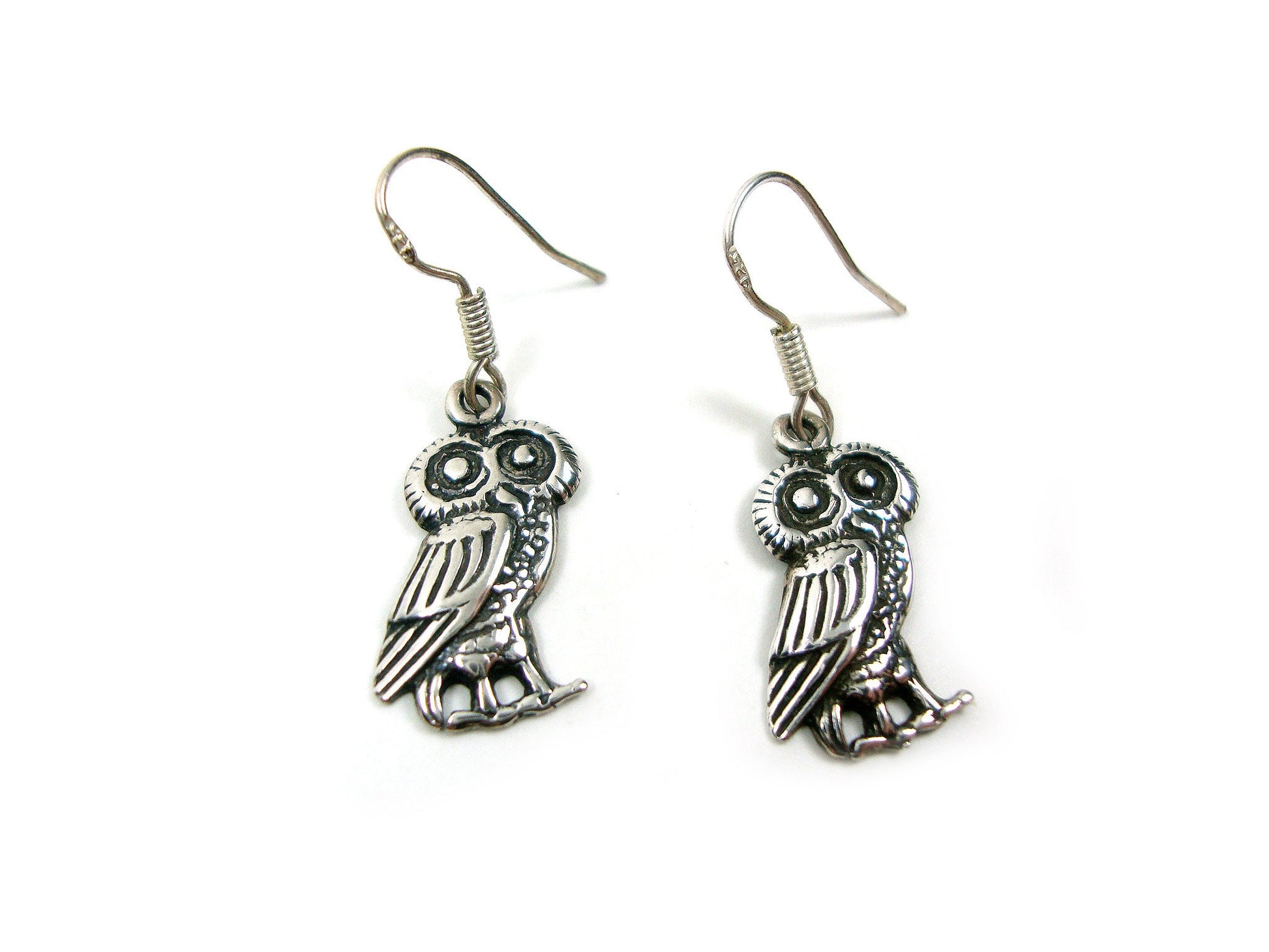 Sterling Silver 925 Ancient Greek Goddess Athena's Owl Dangle Earrings 20x9mm ,Griechische Ohrringe Eule, Boucles d'oreilles Hibou Grecque
